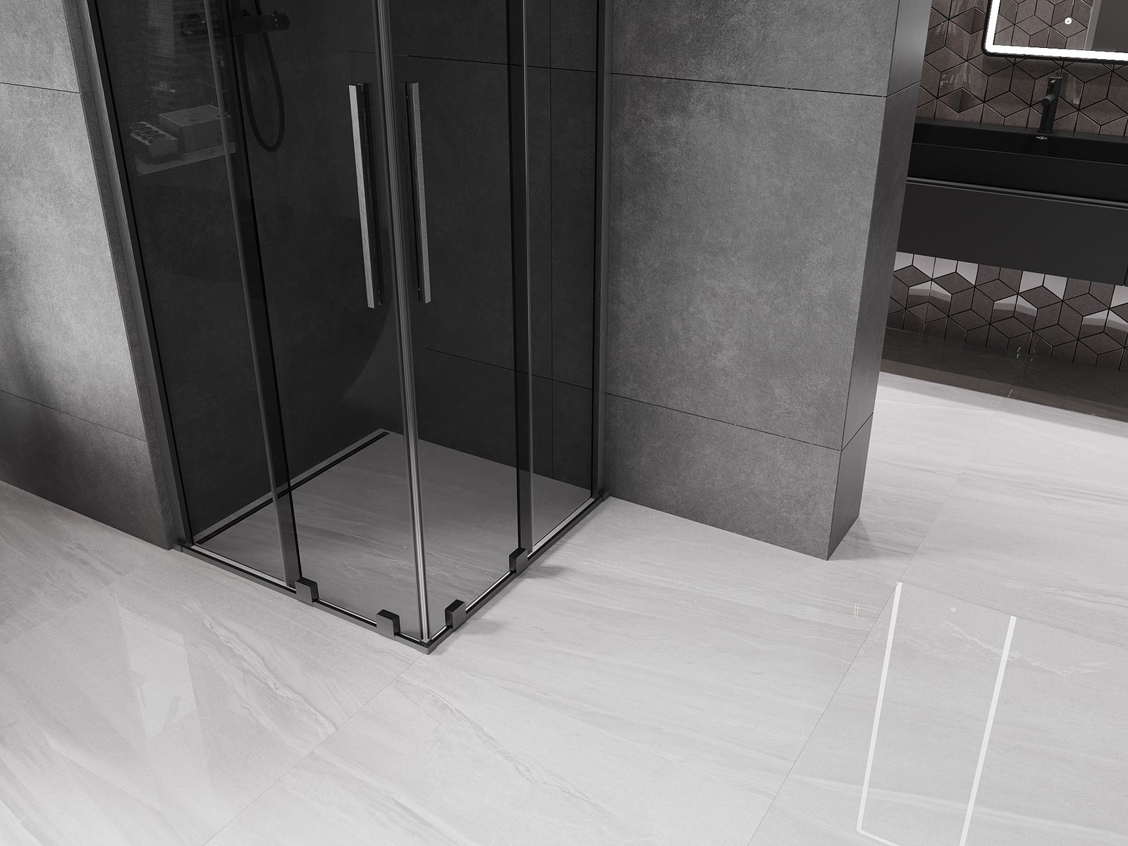 Mexen Velar Duo sliding shower cabin 80 x 80 cm, graphite, brushed gun gray - 871-080-080-42-66