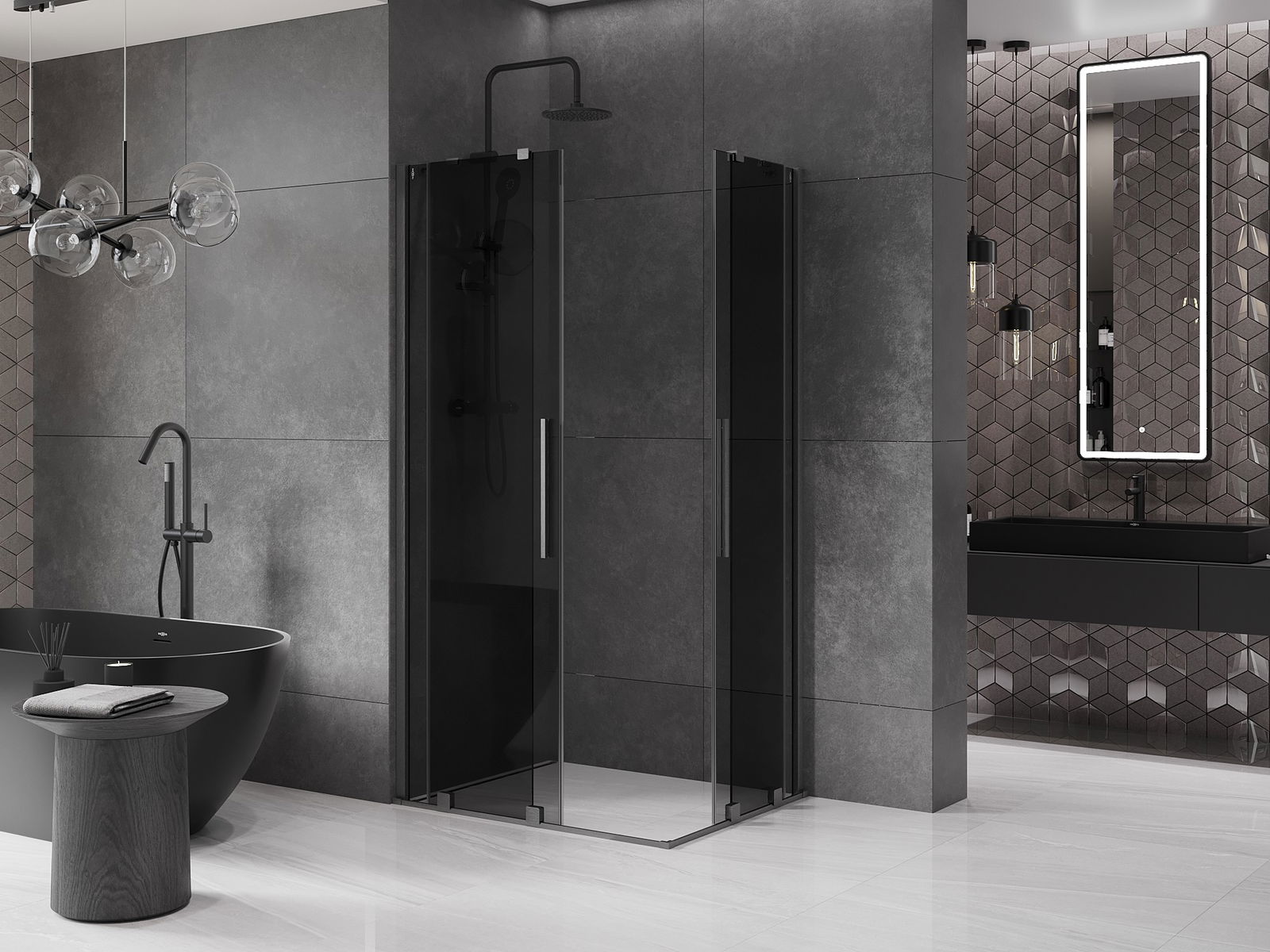 Mexen Velar Duo sliding shower enclosure 100 x 90 cm, graphite, brushed gun gray - 871-100-090-42-66