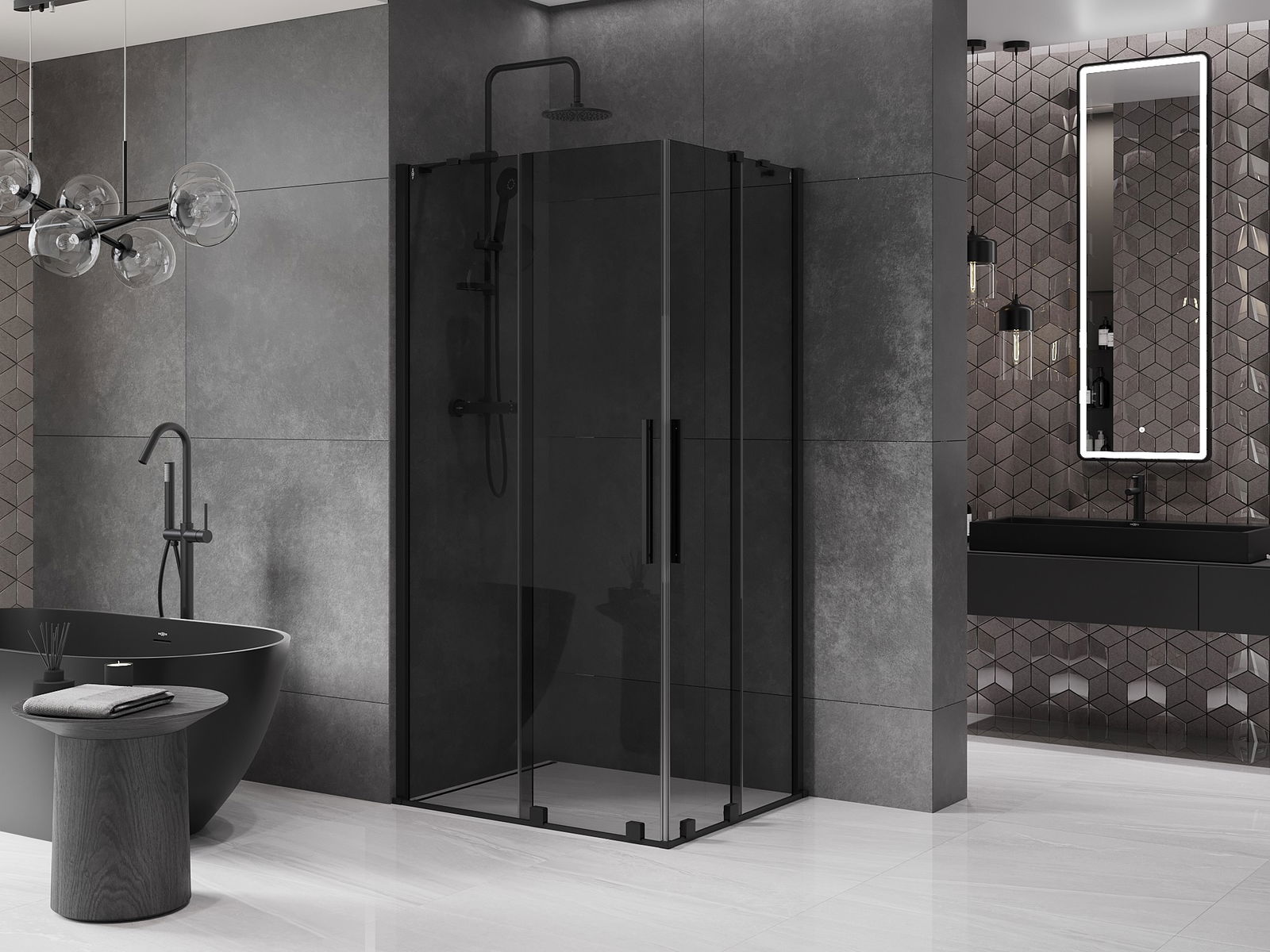 Mexen Velar Duo Sliding Shower Enclosure 90 x 80 cm, Graphite, Black - 871-090-080-42-70