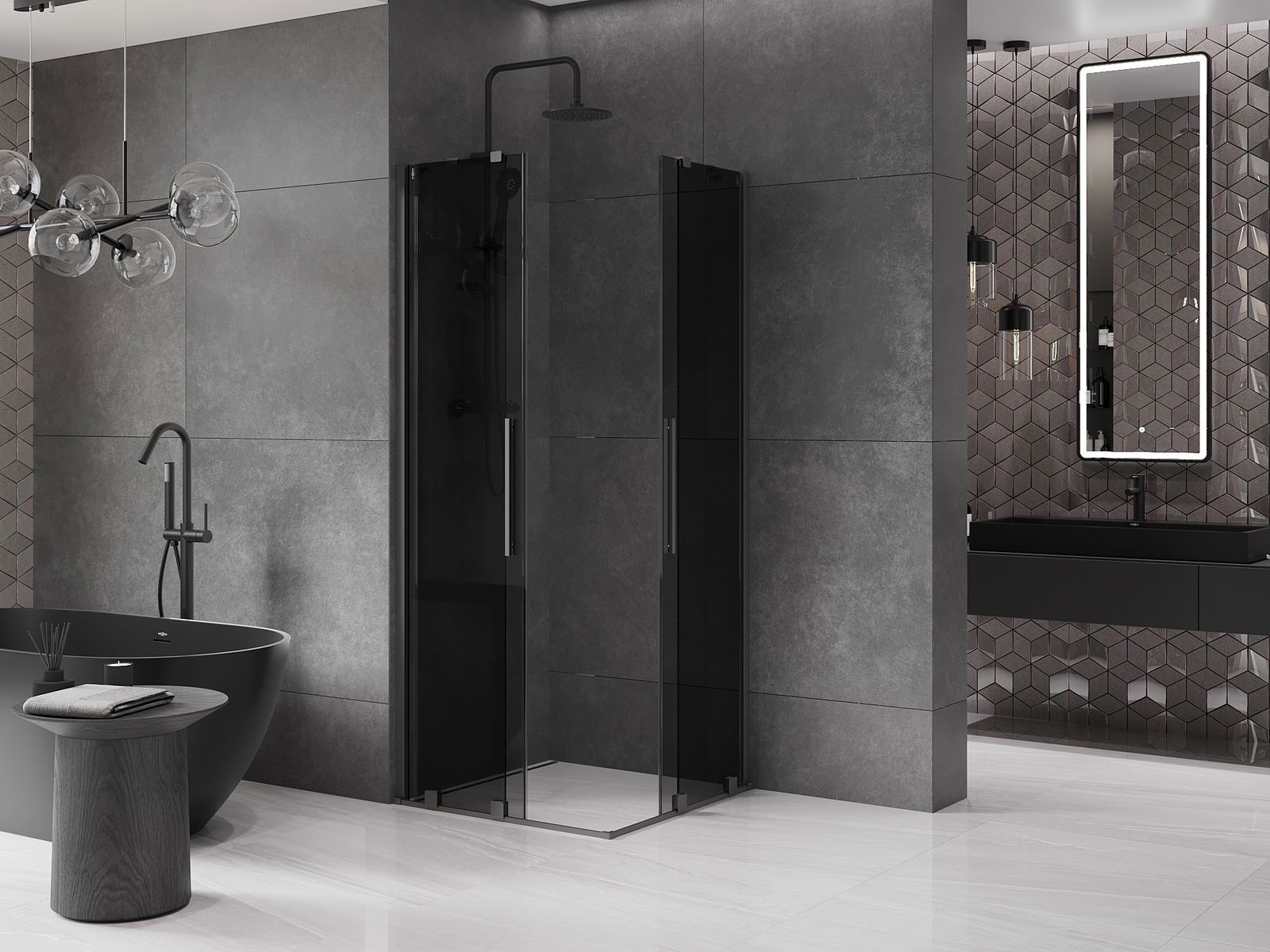A handy and convenient handle made of stainless steel. The stylish shape combined with a finish that matches the color of the profiles gives a modern and stylish look, highlighting the aesthetics of any bathroom.