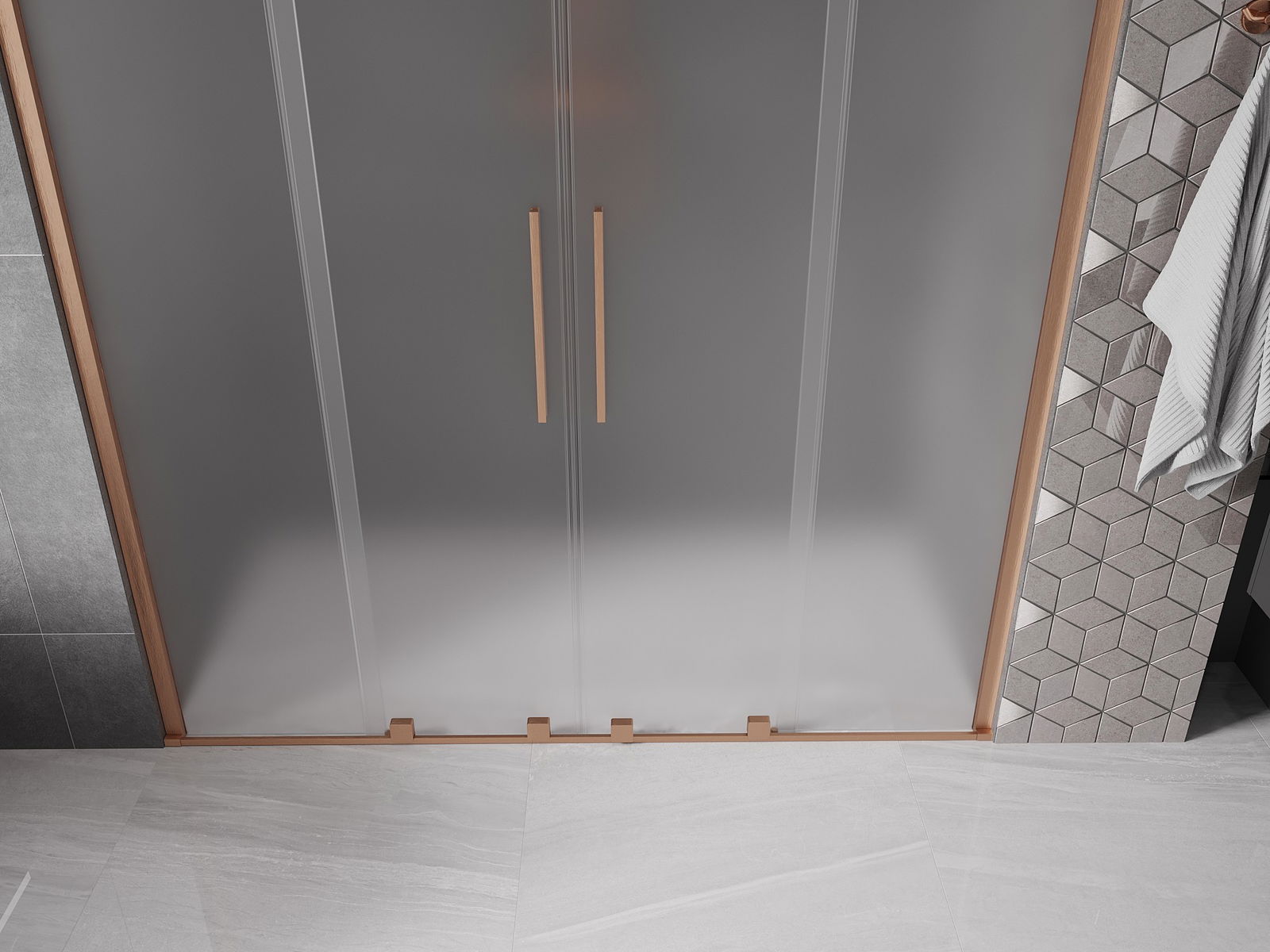 Mexen Velar Duo sliding shower door 170 cm, frosted, brushed copper - 871-170-000-32-65