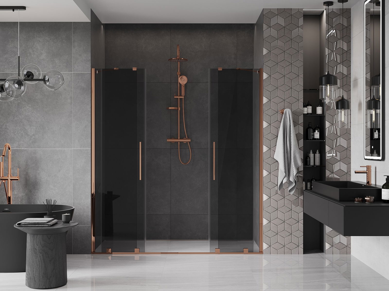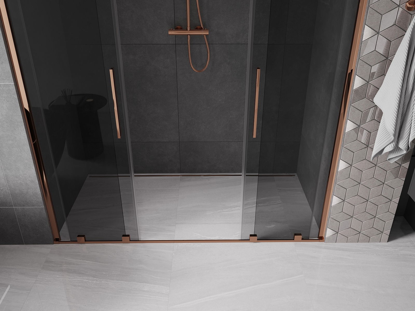 Mexen Velar Duo 180 cm Sliding Shower Door, Graphite, Rose Gold - 871-180-000-42-60