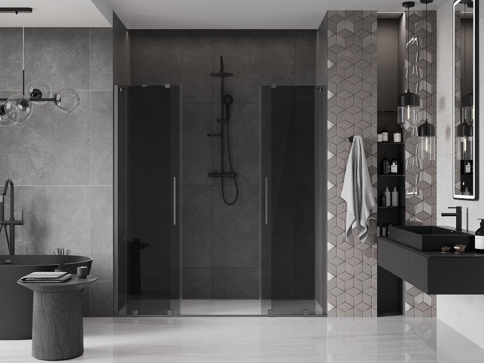 Mexen Velar Duo 180 cm Sliding Shower Door, Graphite, Brushed Gun Gray - 871-180-000-42-66