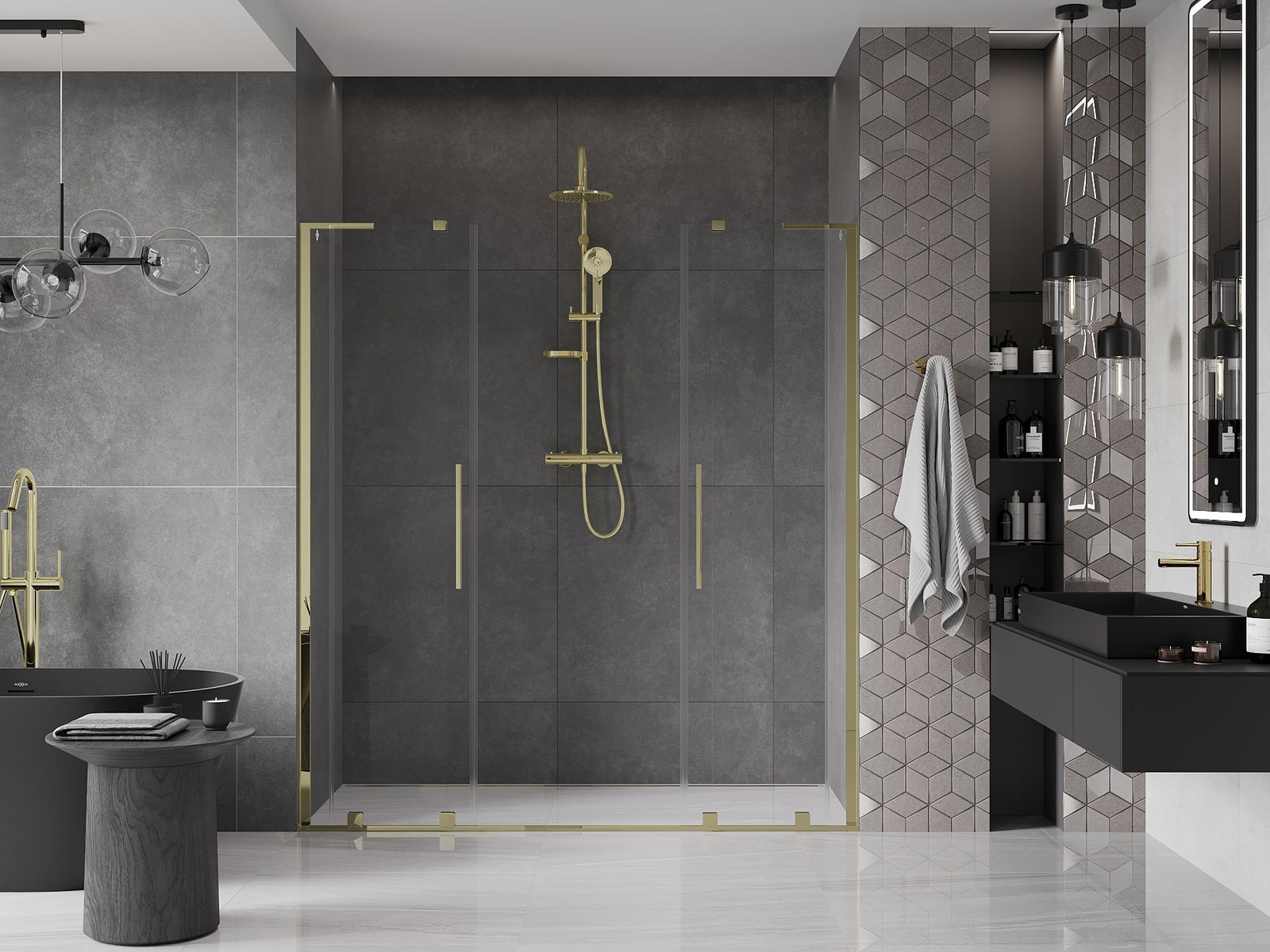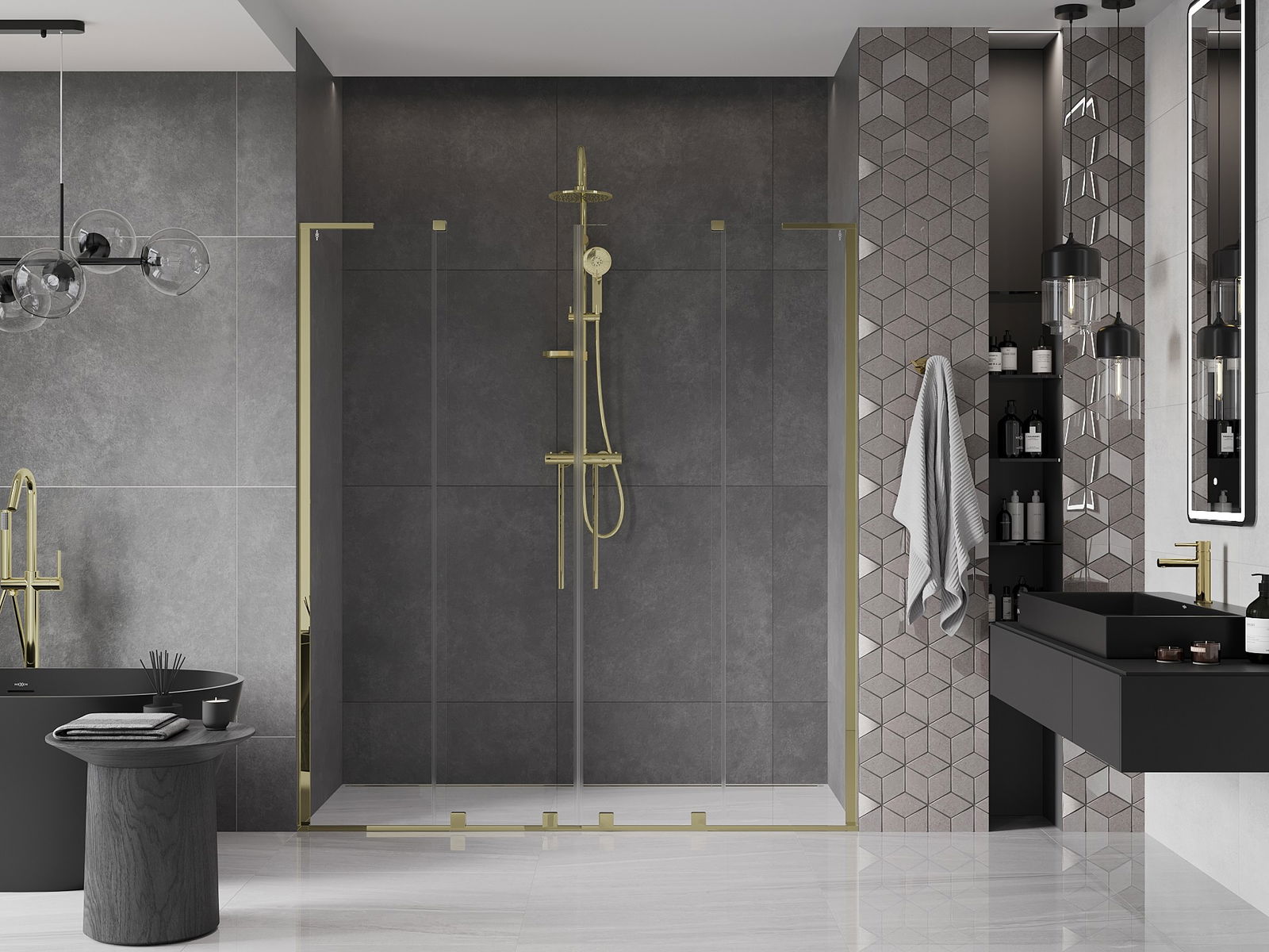 Mexen Velar L Duo sliding shower door 200 cm, transparent, gold - 871-200-003-02-50