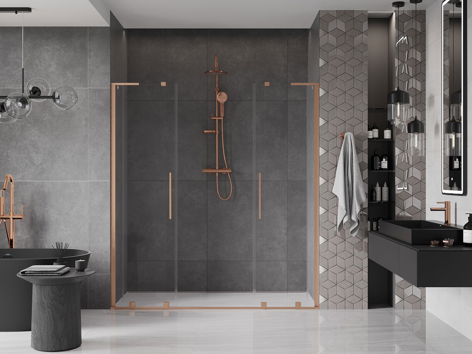 Mexen Velar L Duo sliding shower door 170 cm, transparent, brushed copper - 871-170-003-02-65