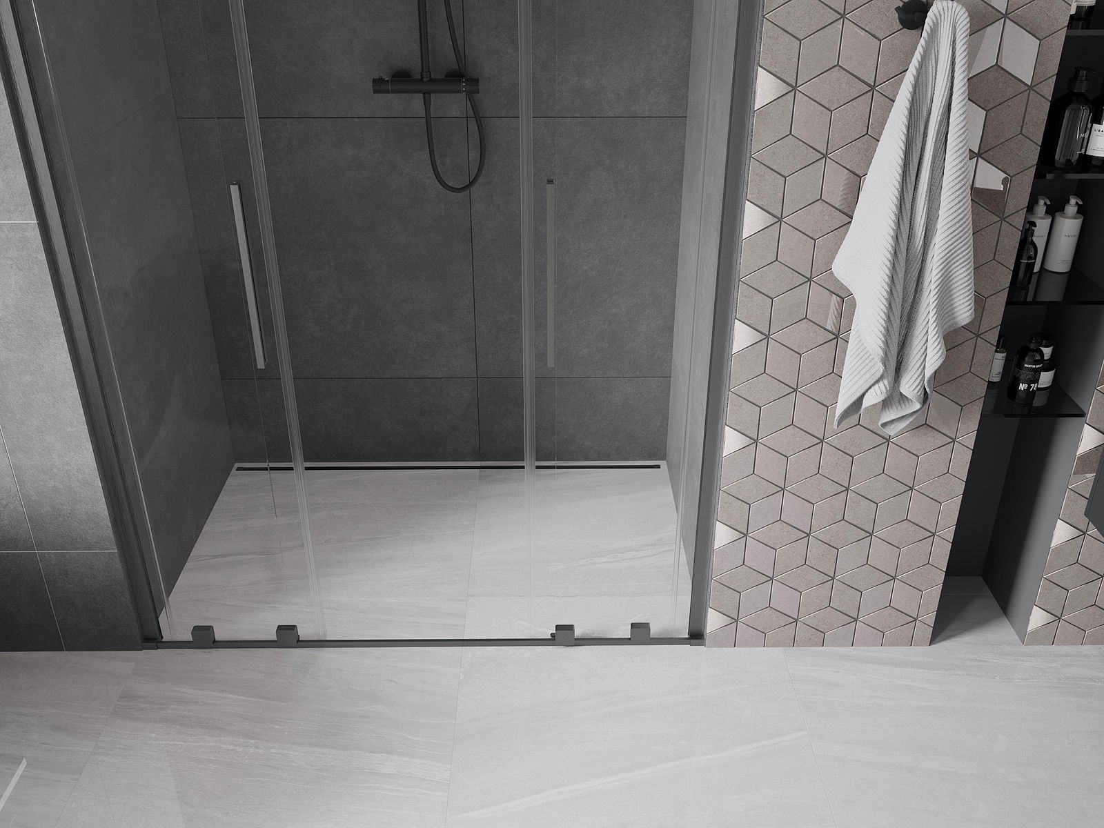 A handy and convenient handle made of stainless steel. The stylish shape combined with a finish that matches the color of the profiles gives a modern and stylish look, highlighting the aesthetics of any bathroom.