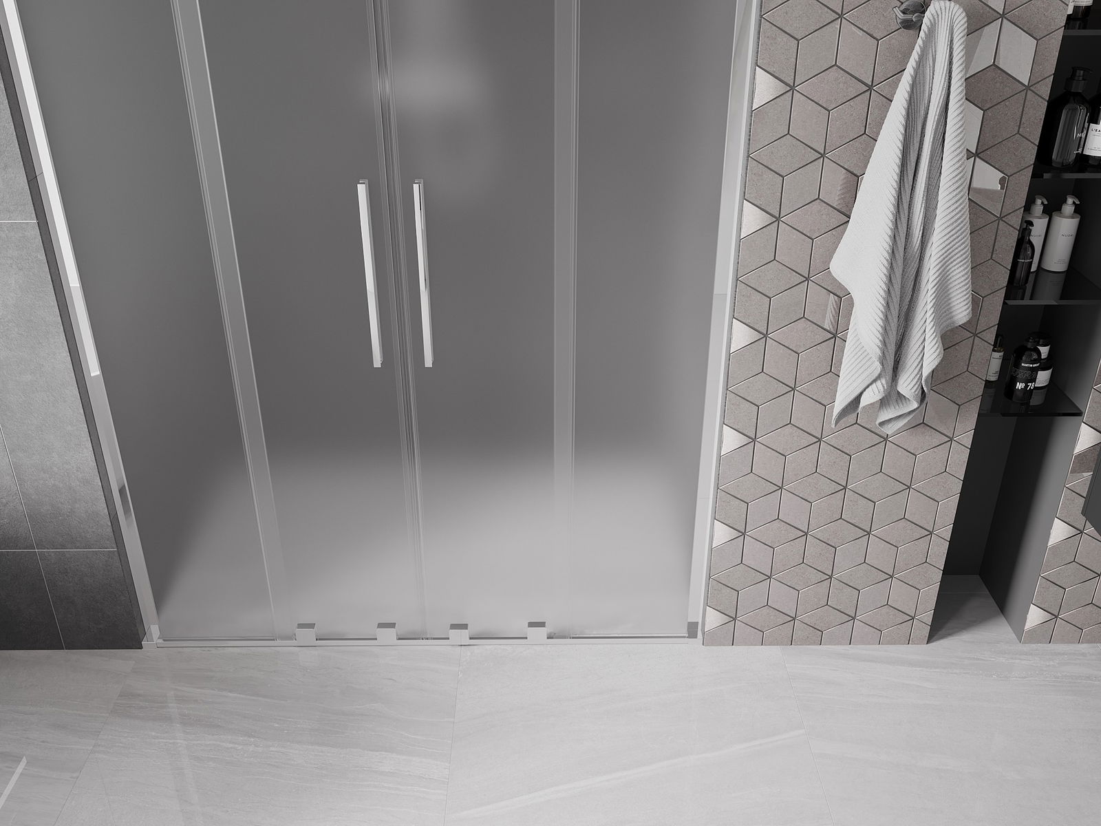 A handy and convenient handle made of stainless steel. The stylish shape combined with a finish that matches the color of the profiles gives a modern and stylish look, highlighting the aesthetics of any bathroom.