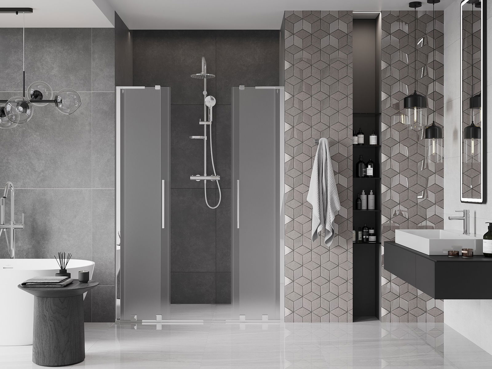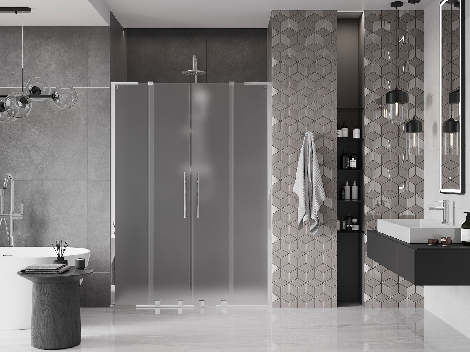 Thanks to the use of a universal mounting system, shower doors can be installed on the right or left side, depending on your needs. This allows you to easily design a shower tailored to the bathroom space.