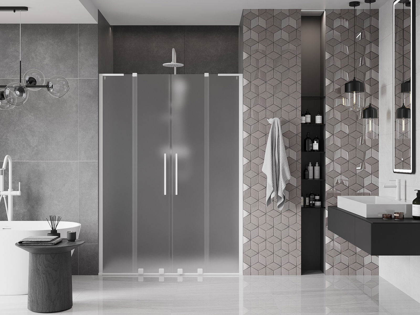 Mexen Velar L Duo sliding shower doors 140 cm, frosted, white - 871-140-003-32-20