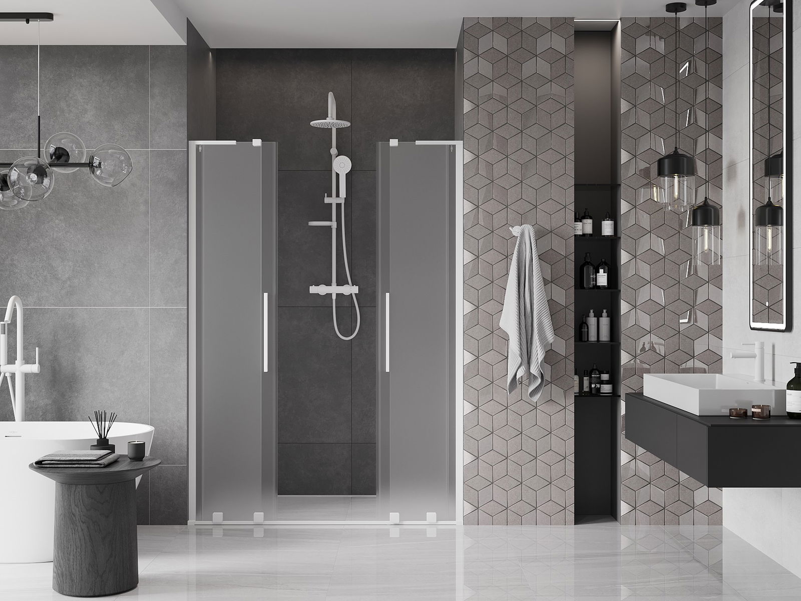 Mexen Velar L Duo sliding shower door 150 cm, frost, white - 871-150-003-32-20