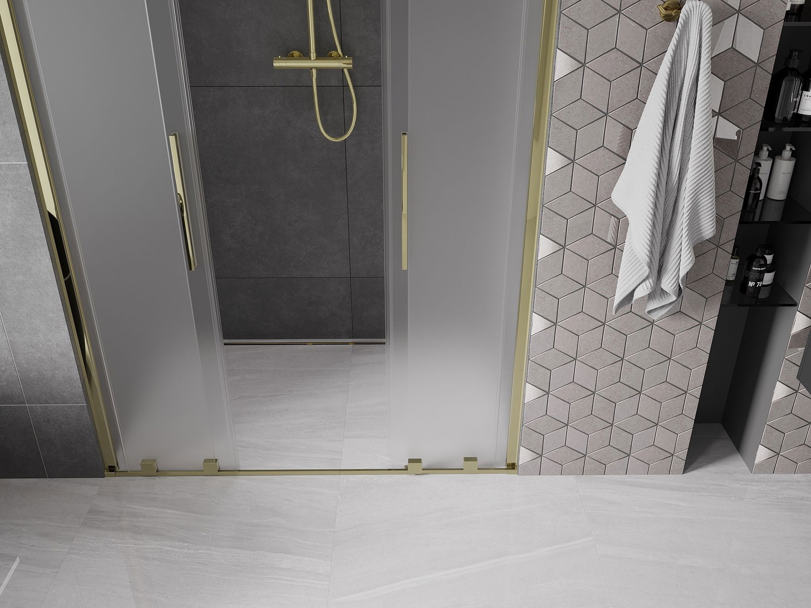 Mexen Velar L Duo sliding shower doors 160 cm, frost, gold - 871-160-003-32-50