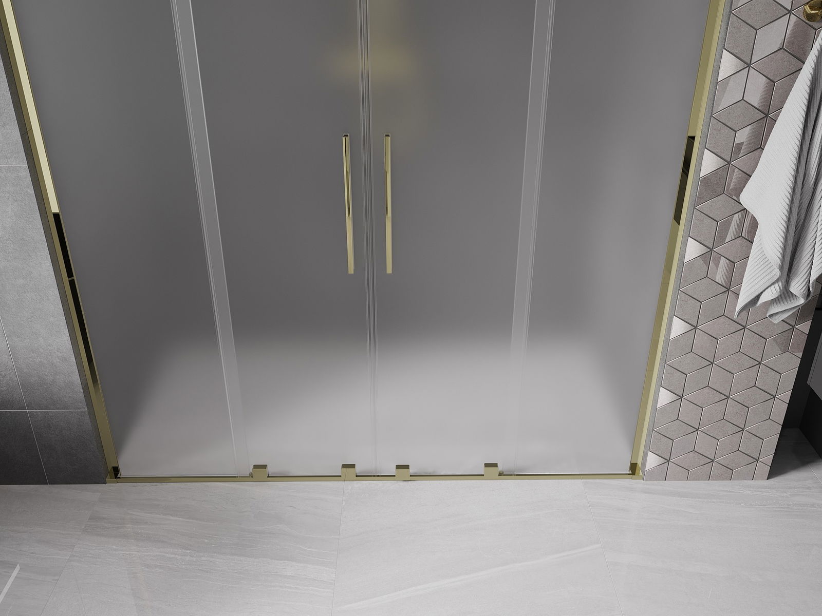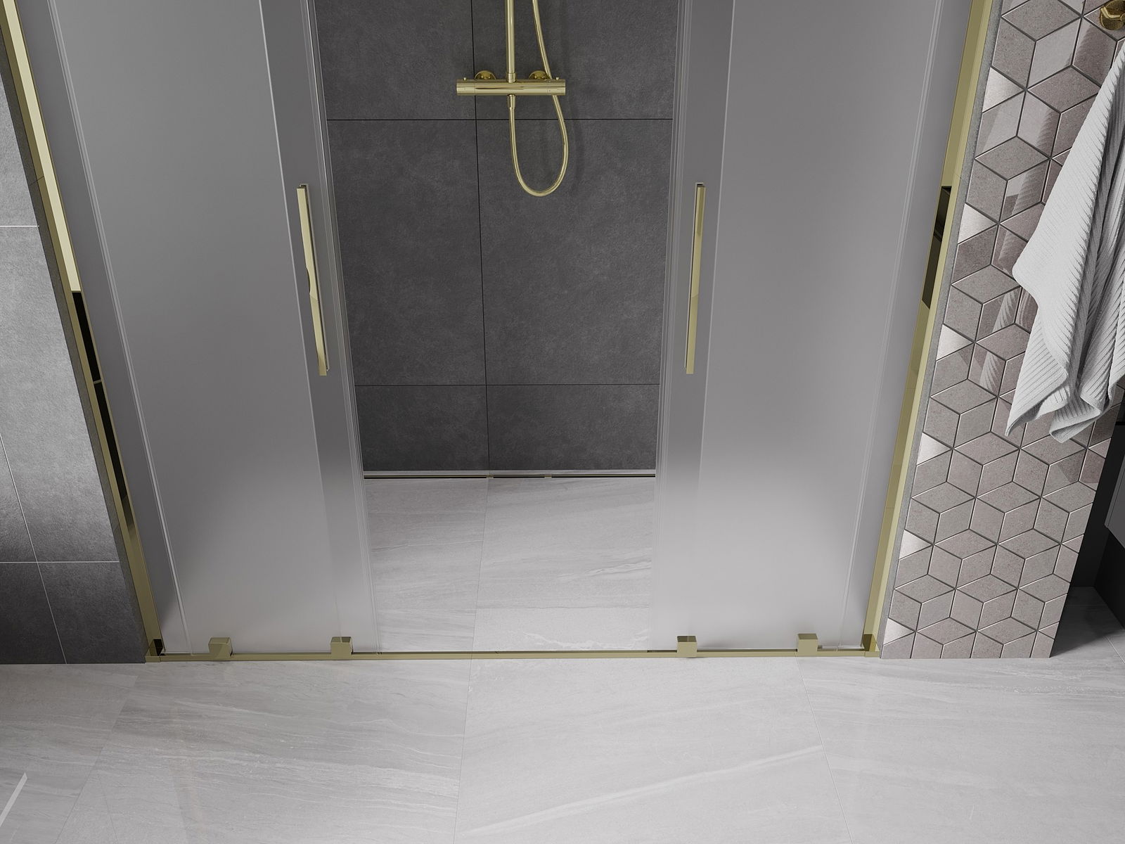 Mexen Velar L Duo sliding shower doors 170 cm, frosted, gold - 871-170-003-32-50