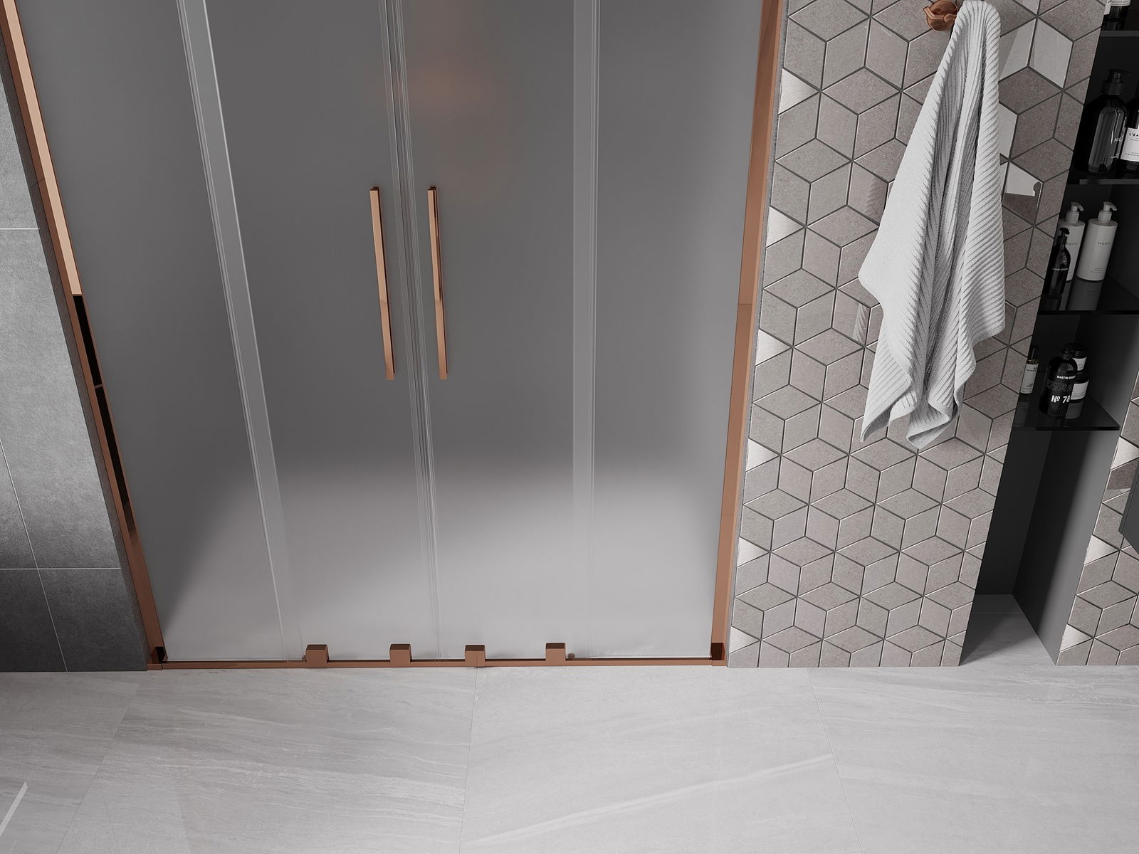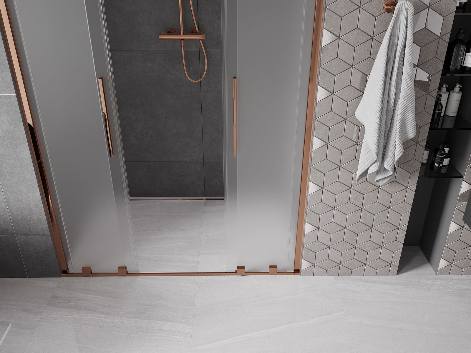 Mexen Velar L Duo sliding shower door 150 cm, frosted, rose gold - 871-150-003-32-60