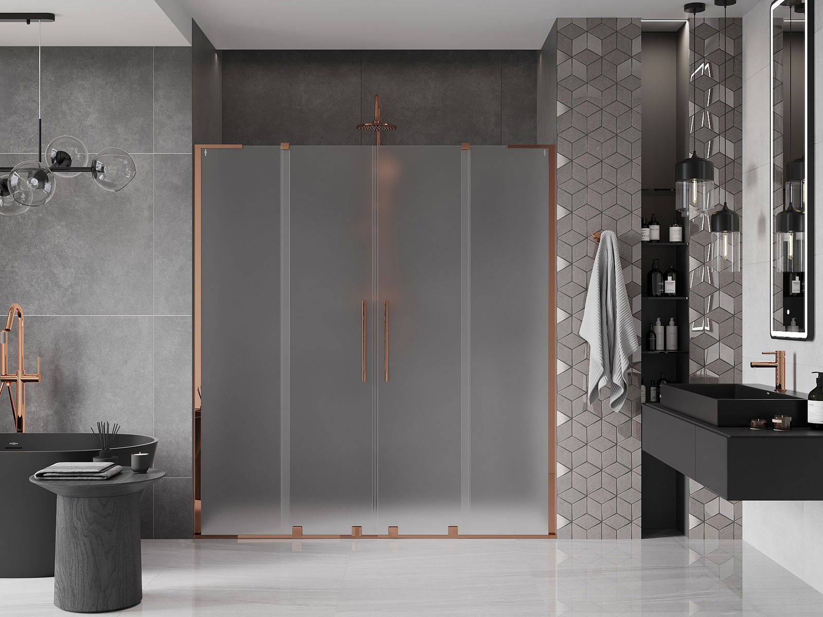 Mexen Velar L Duo 180 cm Sliding Shower Door, Frosted, Rose Gold - 871-180-003-32-60