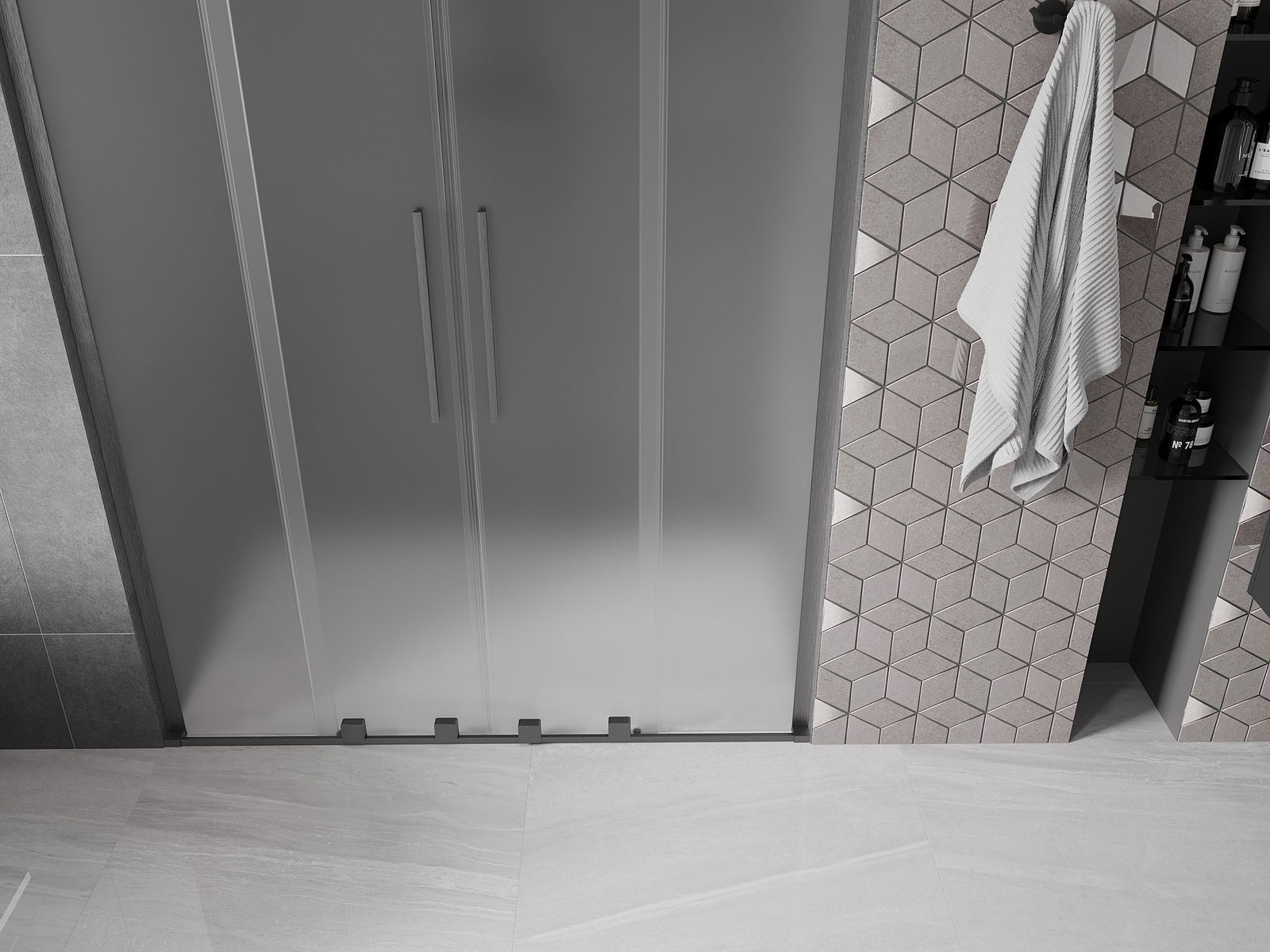 A handy and convenient handle made of stainless steel. The stylish shape combined with a finish that matches the color of the profiles gives a modern and stylish look, highlighting the aesthetics of any bathroom.