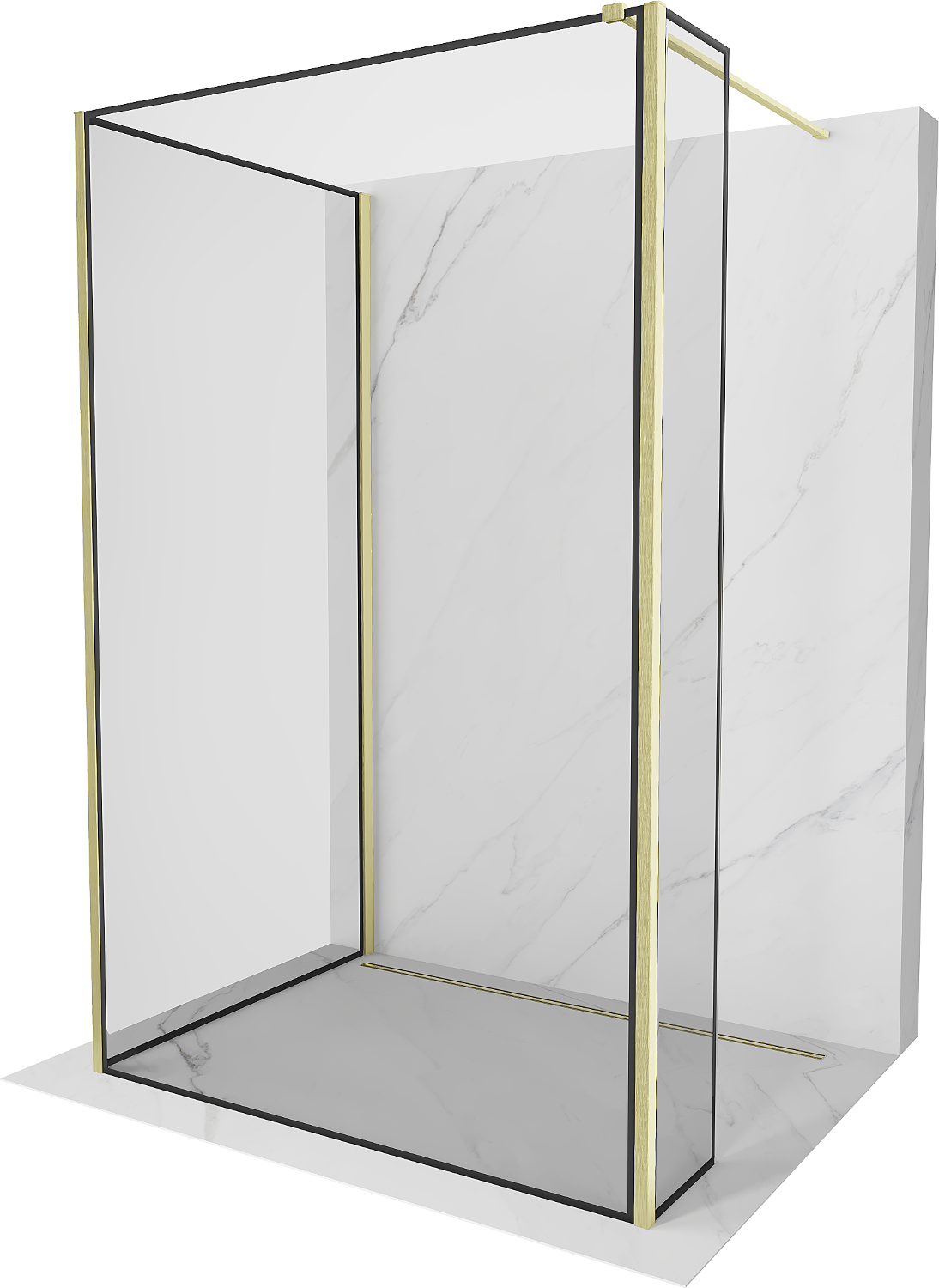 Mexen Kioto Walk-in Shower Wall 100 x 80 x 30 cm, Black Frame, Gold Brushed - 800-100-080-221-55-70-030