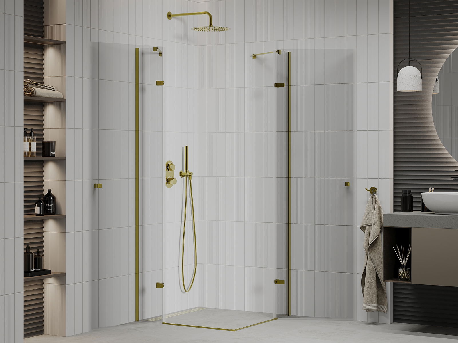 Mexen Roma Duo shower enclosure swing 90 x 90 cm, transparent, gold - 854-090-090-50-00-02