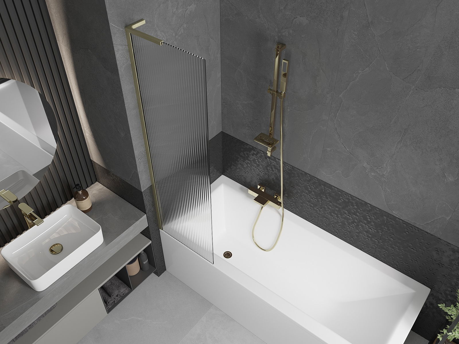 Mexen Next L 1-wing Bath Screen 50 x 150 cm, Stripes, Brushed Gold - 895-050-000-03-09-55