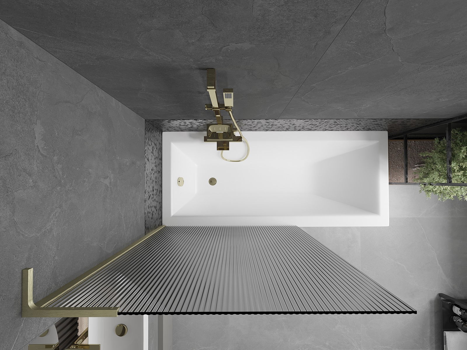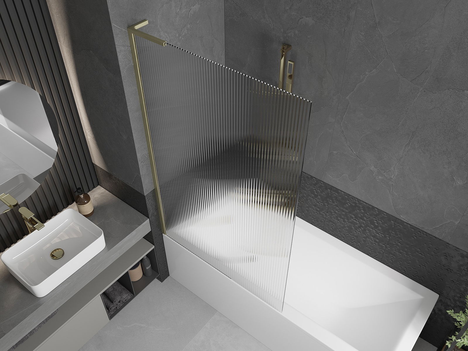 Mexen Next L bath screen 1-wing 100 x 150 cm, stripes, brushed gold - 895-100-000-03-09-55