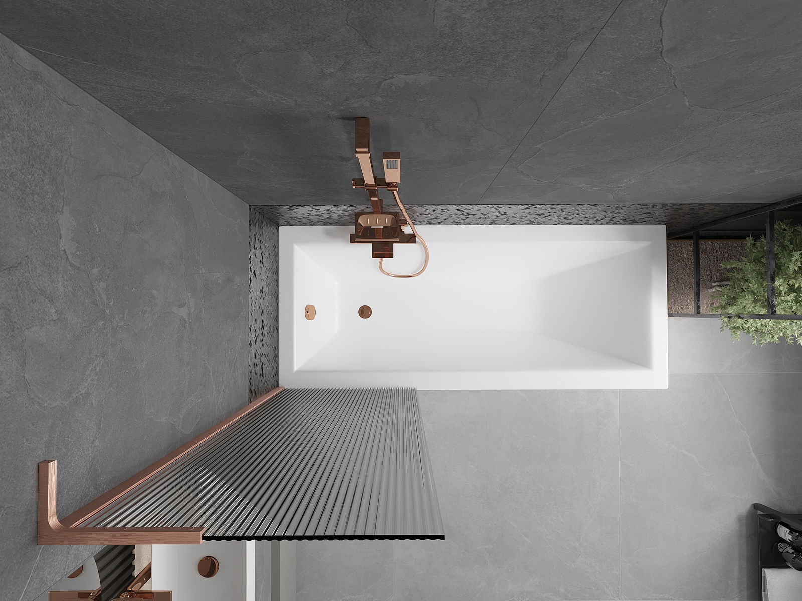 Mexen Next L Bath Screen 1-Panel 60 x 150 cm, Stripes, Brushed Copper - 895-060-000-03-09-65