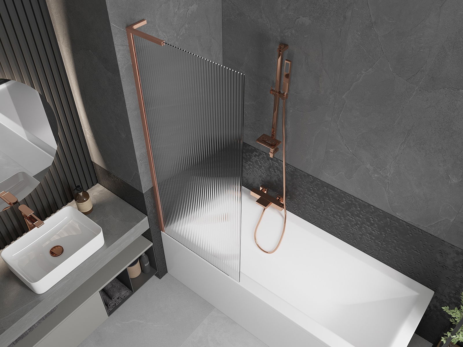 Mexen Next L 1-wing bath screen 70 x 150 cm, stripes, brushed copper - 895-070-000-03-09-65