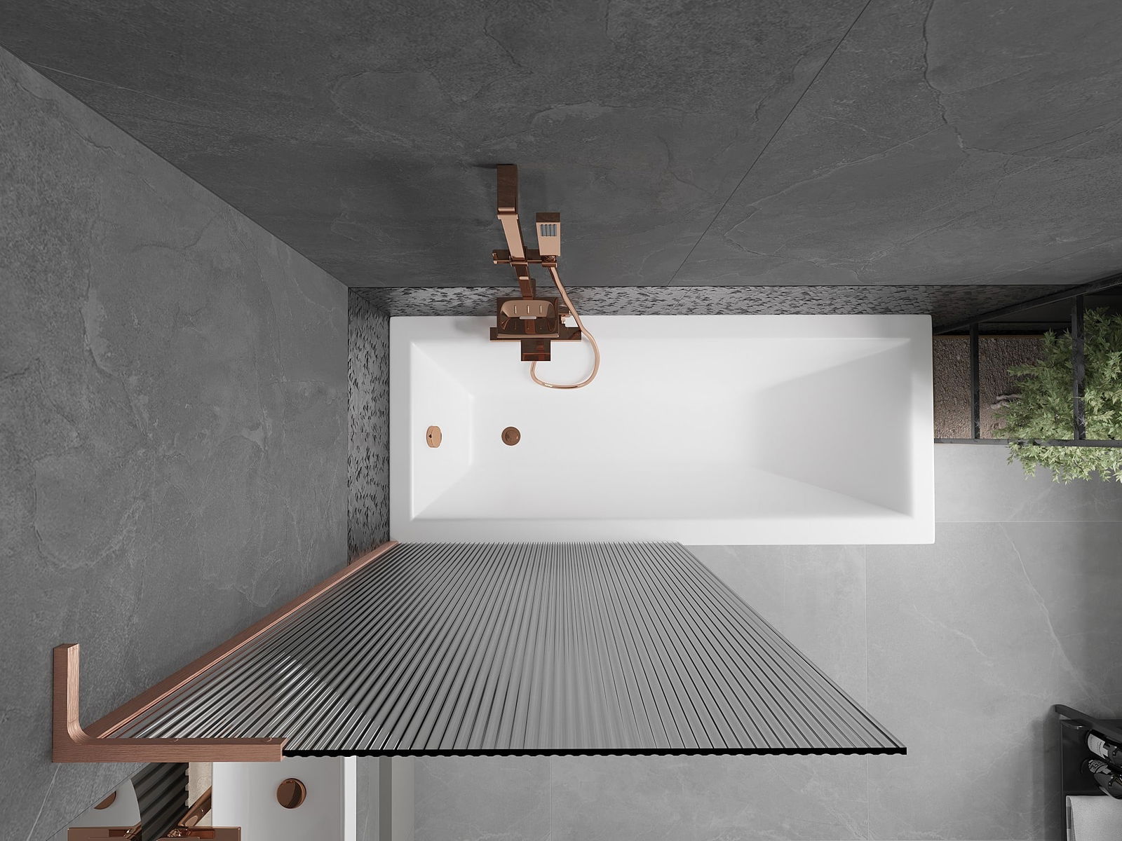 Mexen Next L Bath Screen 1-Panel 90 x 150 cm, Stripes, Brushed Copper - 895-090-000-03-09-65