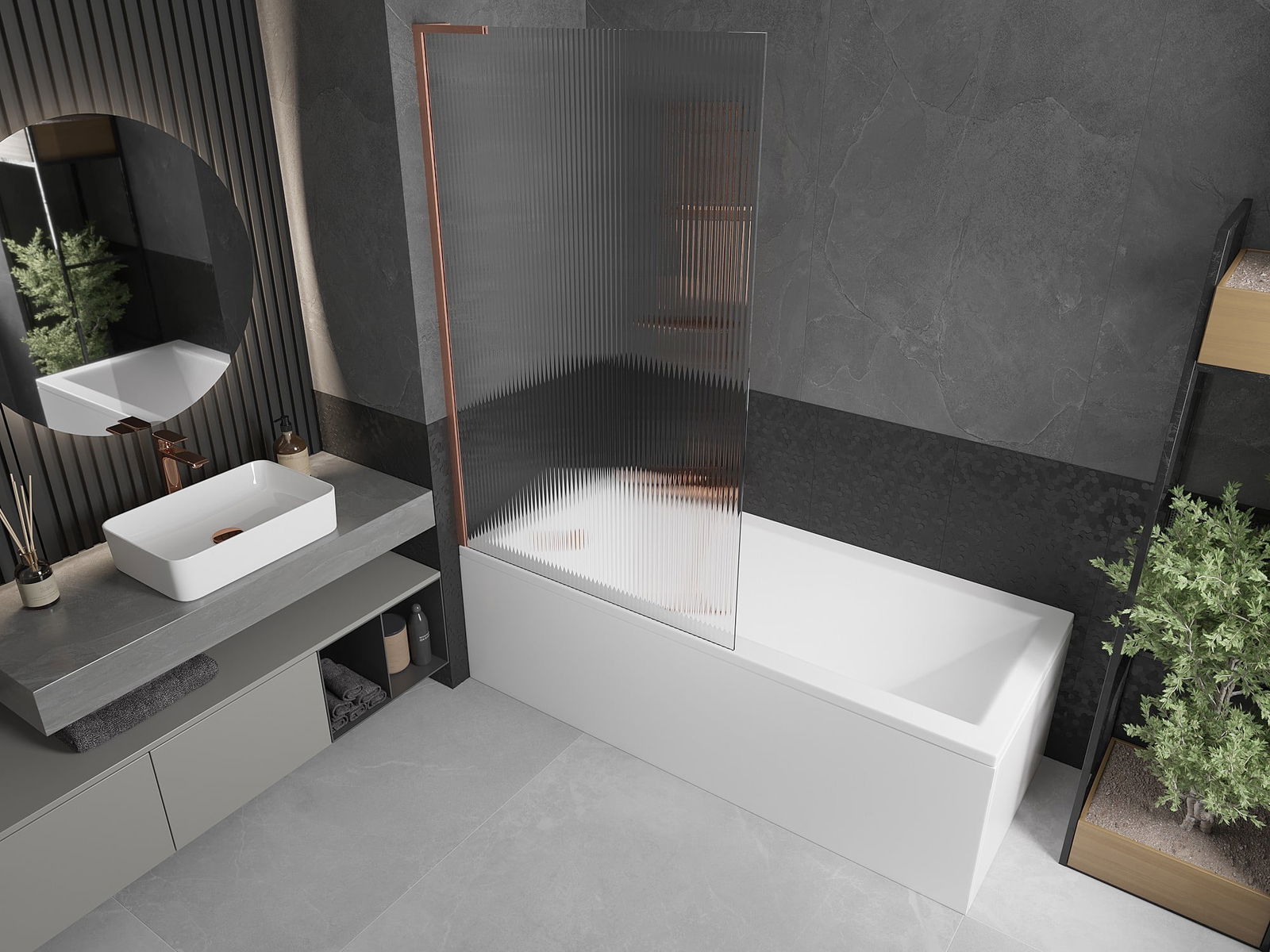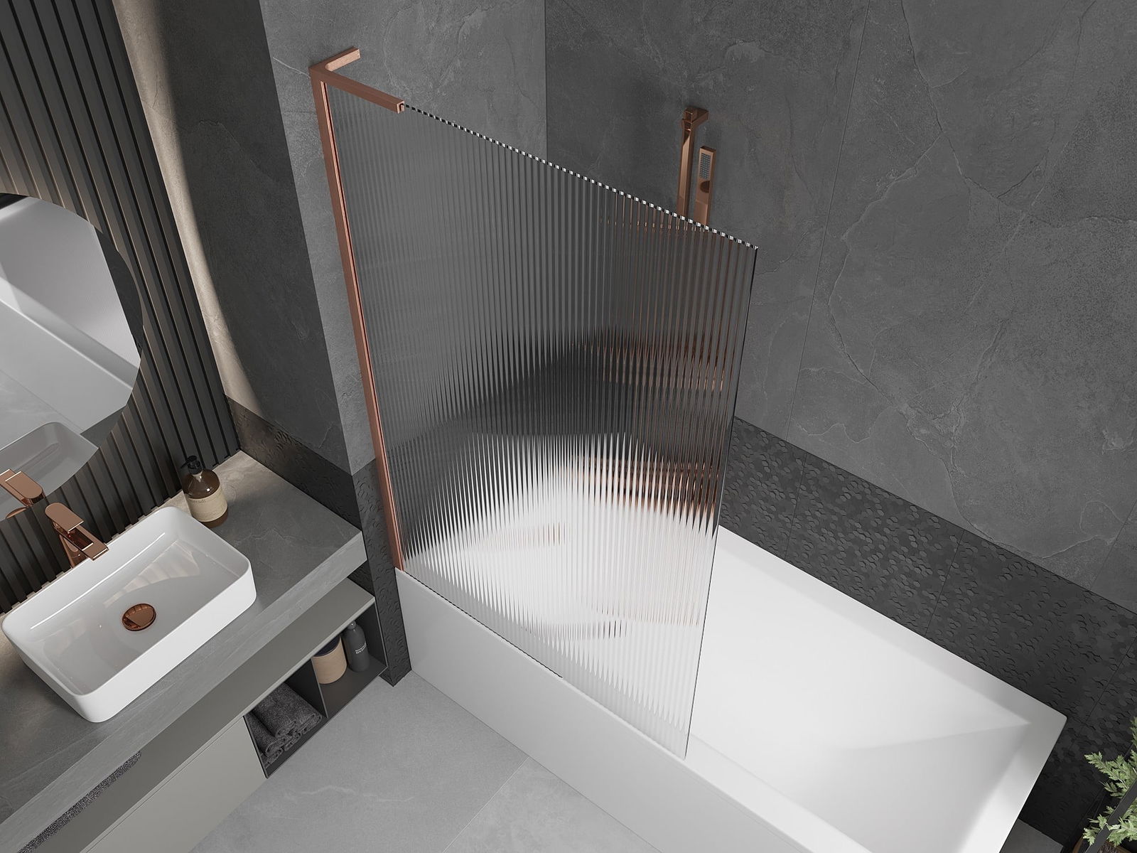 Mexen Next L Bath Screen 1-Panel 100 x 150 cm, Striped, Brushed Copper - 895-100-000-03-09-65