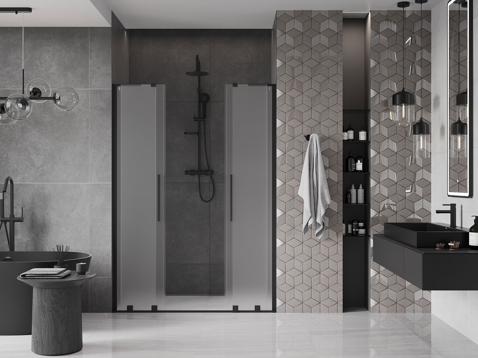 Mexen Velar L Duo 150 cm Sliding Shower Doors, Frosted, Black - 871-150-003-32-70