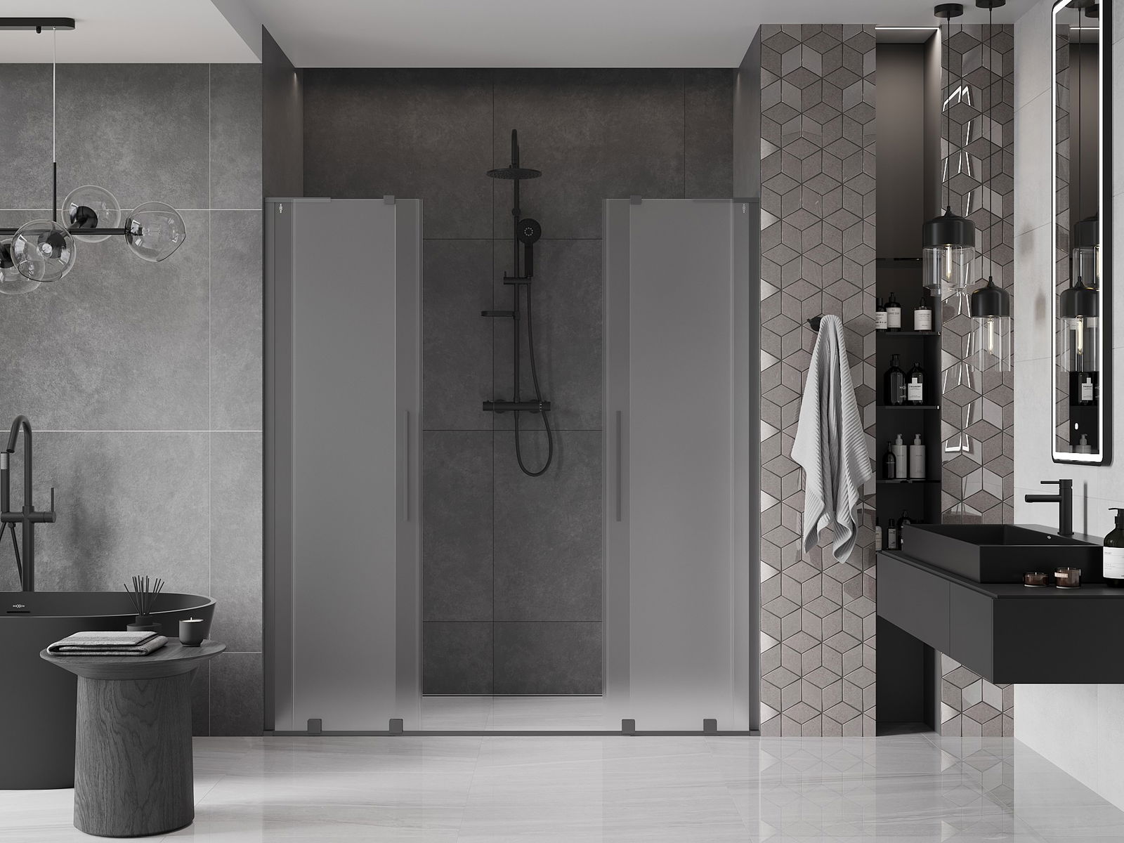Mexen Velar L Duo 200 cm Sliding Shower Door, Frosted, Gun Metal - 871-200-003-32-95