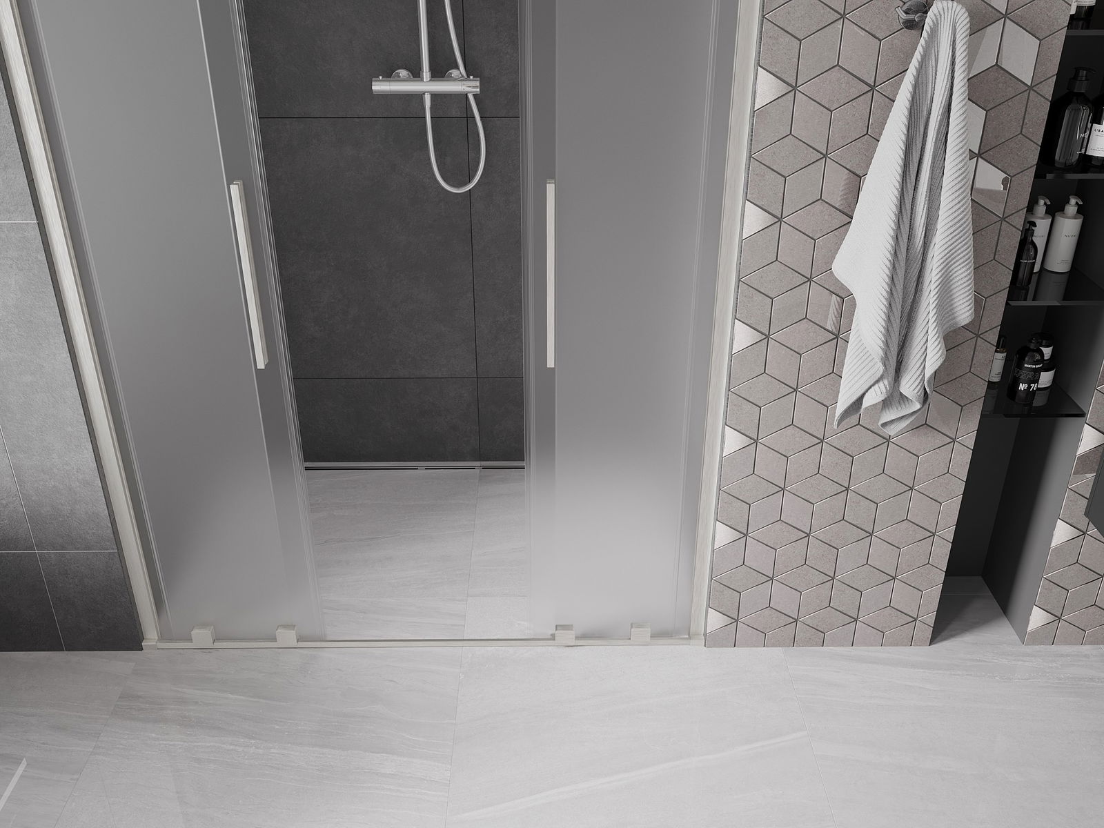 A handy and convenient handle made of stainless steel. The stylish shape combined with a finish that matches the color of the profiles gives a modern and stylish look, highlighting the aesthetics of any bathroom.