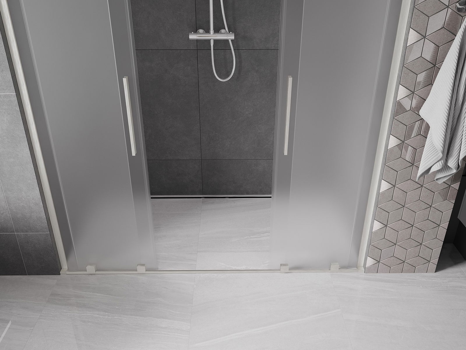 A handy and convenient handle made of stainless steel. The stylish shape combined with a finish that matches the color of the profiles gives a modern and stylish look, highlighting the aesthetics of any bathroom.
