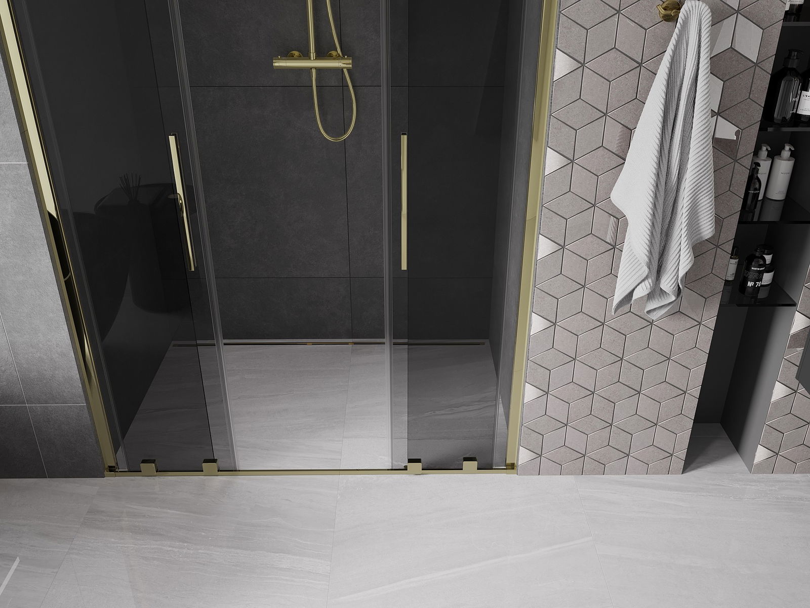 Mexen Velar L Duo sliding shower door 150 cm, graphite, gold - 871-150-003-42-50