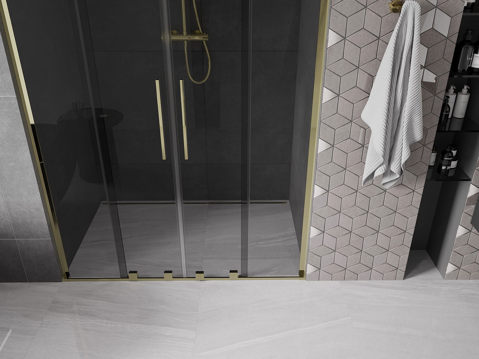 Mexen Velar L Duo sliding shower doors 160 cm, graphite, gold - 871-160-003-42-50