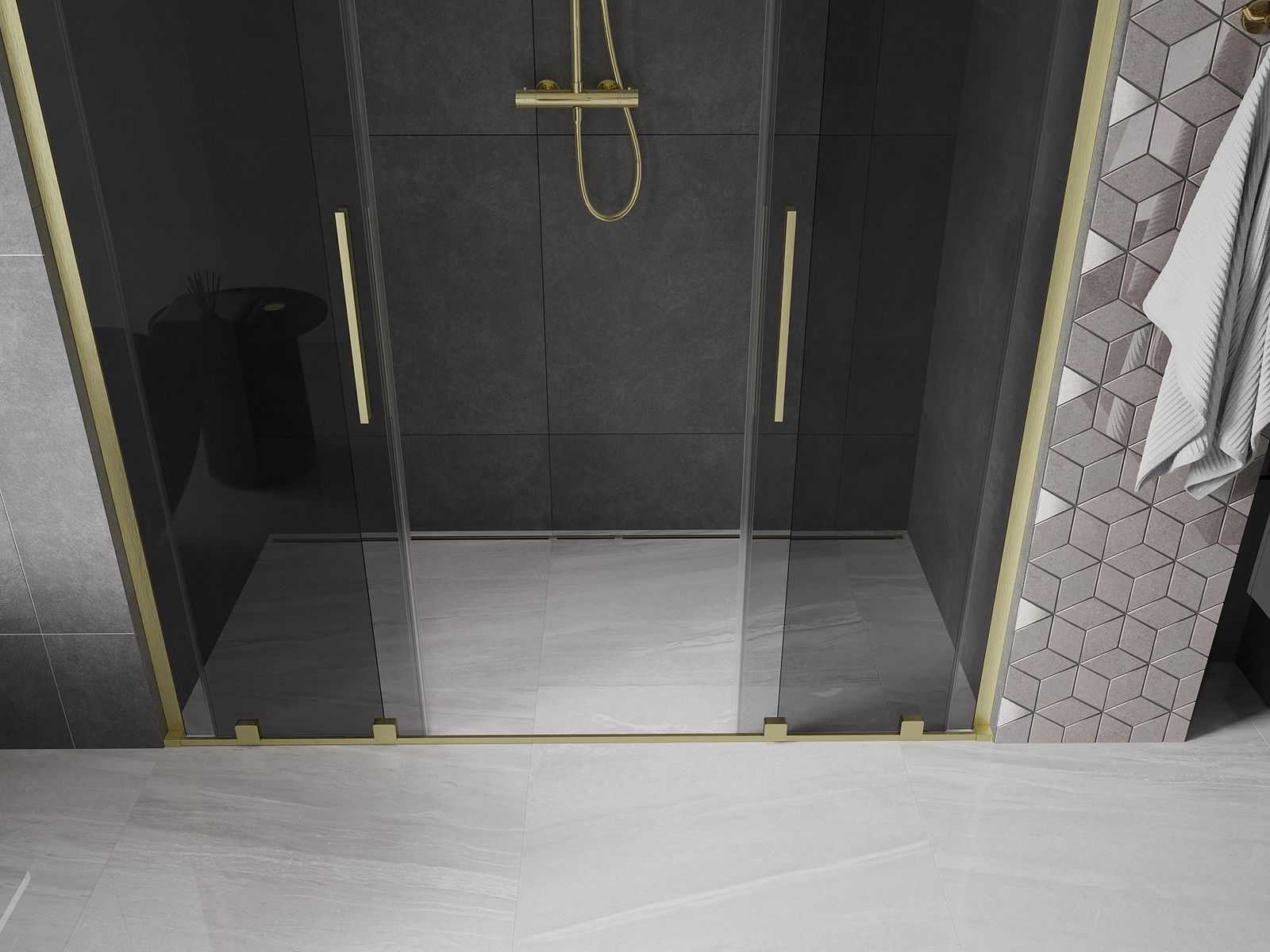 Mexen Velar L Duo sliding shower door 180 cm, graphite, brushed gold - 871-180-003-42-55