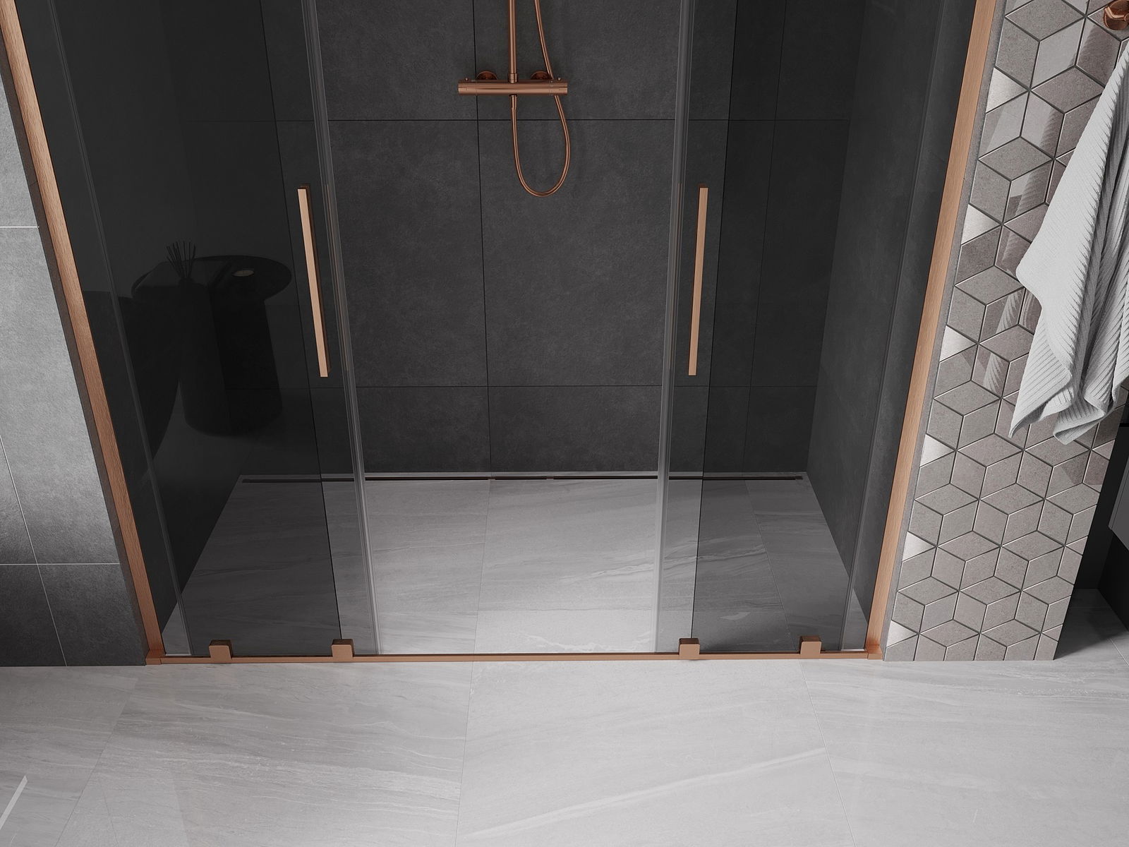 Mexen Velar L Duo sliding shower doors 180 cm, graphite, brushed copper - 871-180-003-42-65