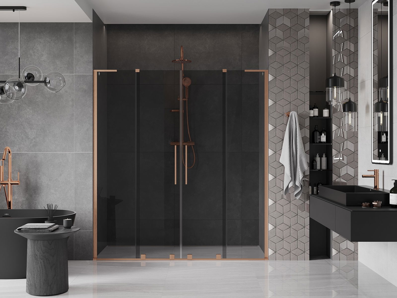 Mexen Velar L Duo sliding shower door 200 cm, graphite, brushed copper - 871-200-003-42-65