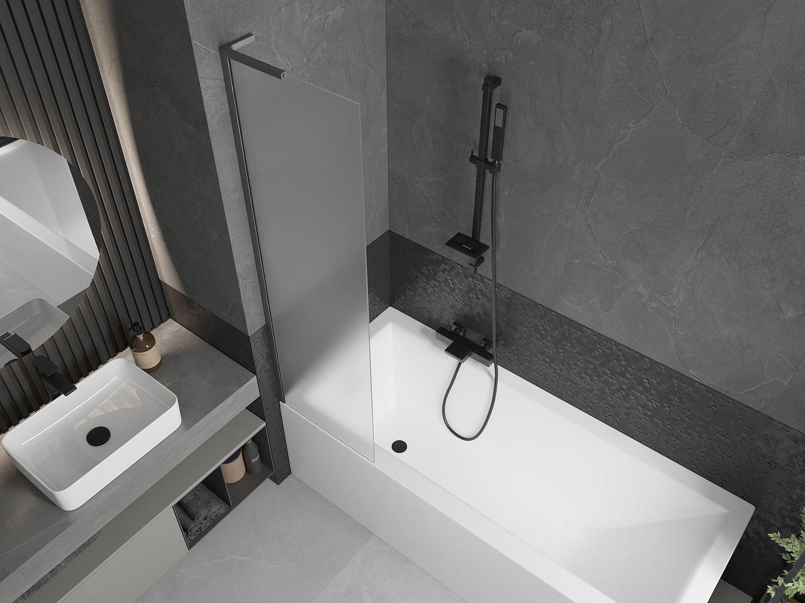 Effective protection against water spilling during bathing. The screen has seals that perfectly fit the glass surface and the edge of the bathtub. A functional solution ensuring safety and easy maintenance of cleanliness.