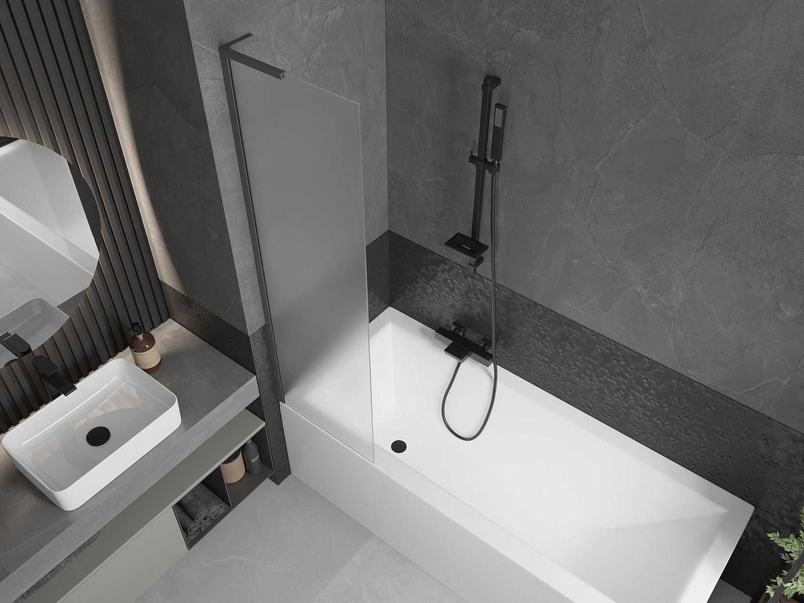 Mexen Next L Bathtub Screen 1-Leaf 50 x 150 cm, Frost, Gun Metal - 895-050-000-03-30-95