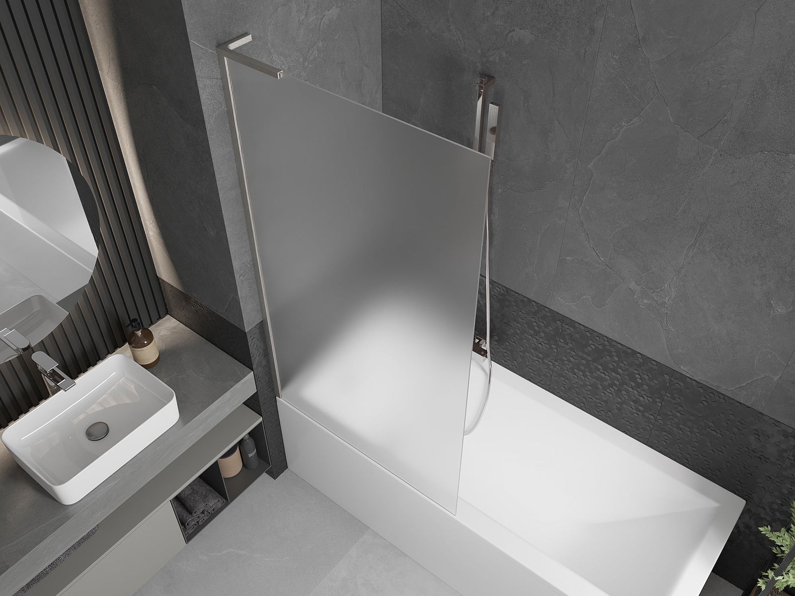 Effective protection against water spilling during bathing. The screen has seals that perfectly fit the glass surface and the edge of the bathtub. A functional solution ensuring safety and easy maintenance of cleanliness.