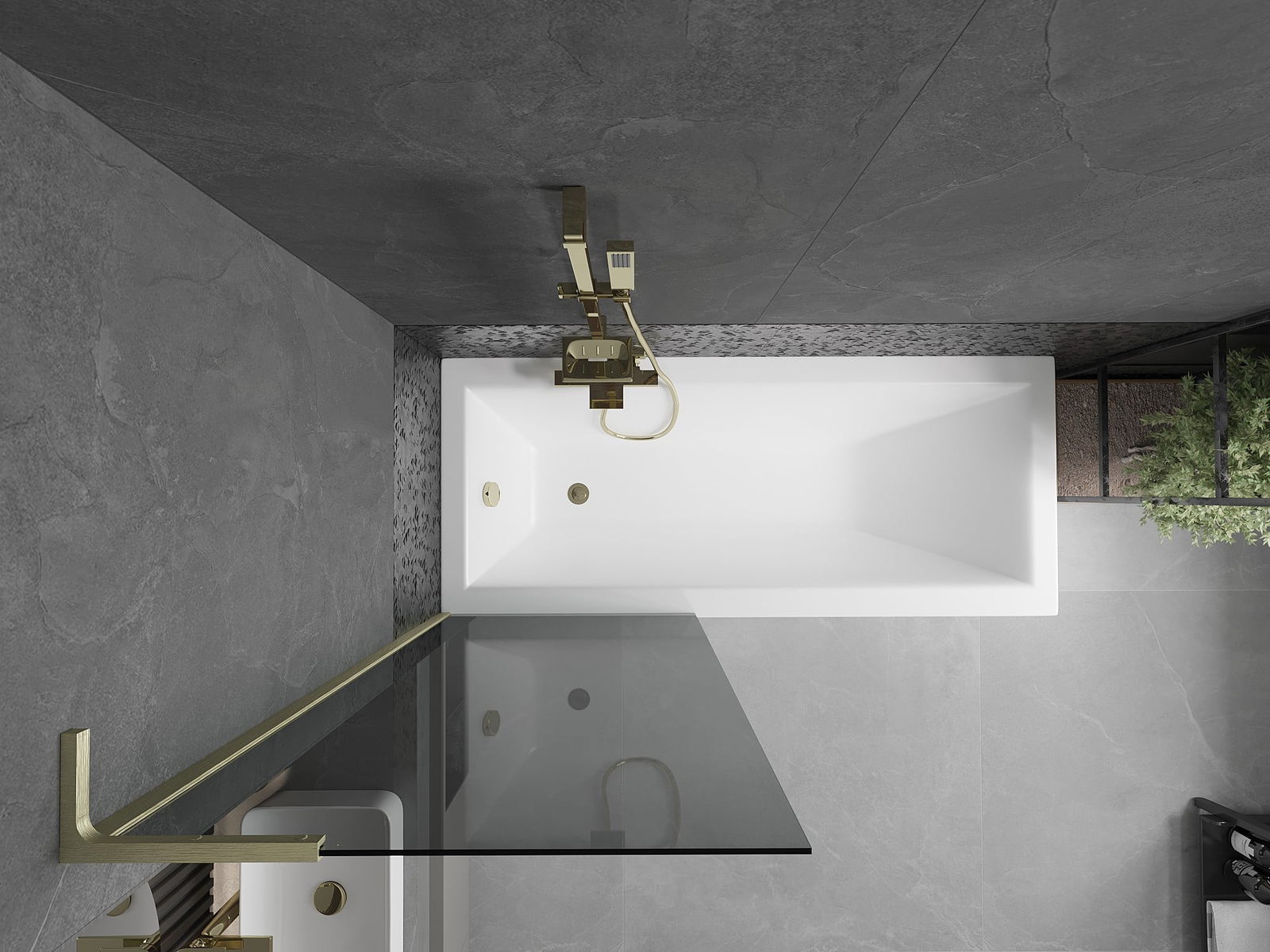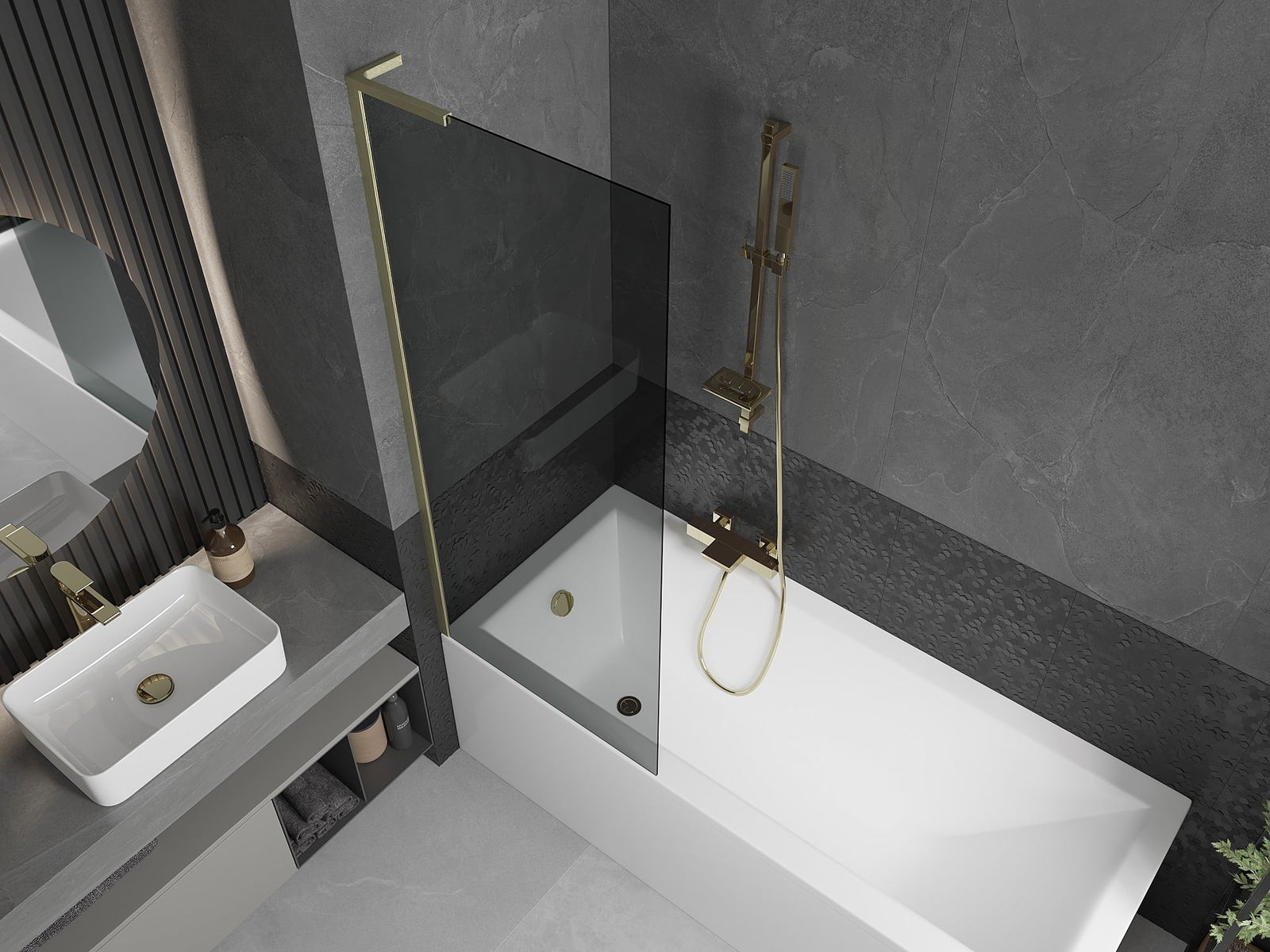 Mexen Next L Bath Screen 1-Wing 70 x 150 cm, Graphite, Brushed Gold - 895-070-000-03-40-55