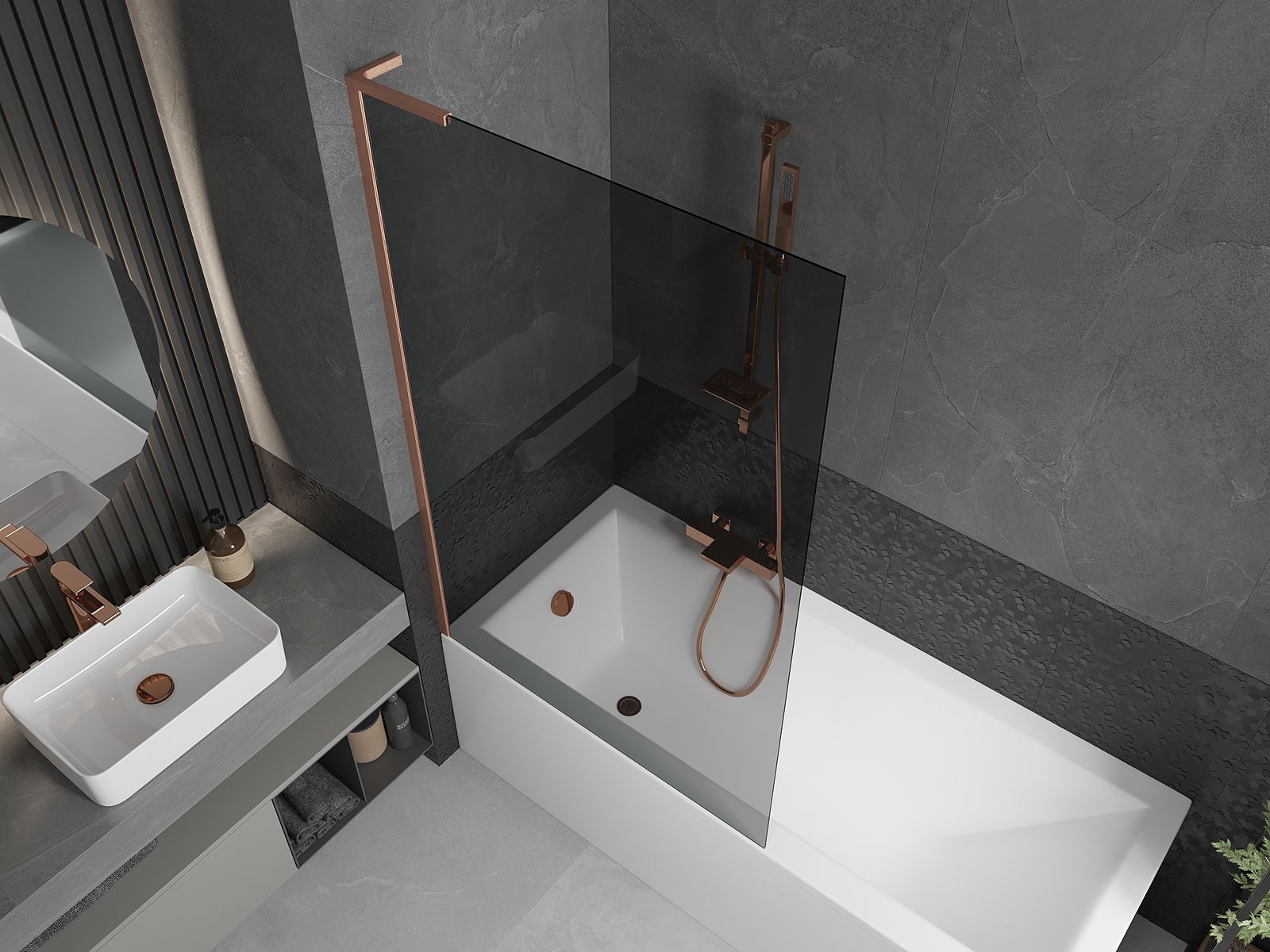 Mexen Next L Bathtub Screen 1-Panel 100 x 150 cm, Graphite, Brushed Copper - 895-100-000-03-40-65