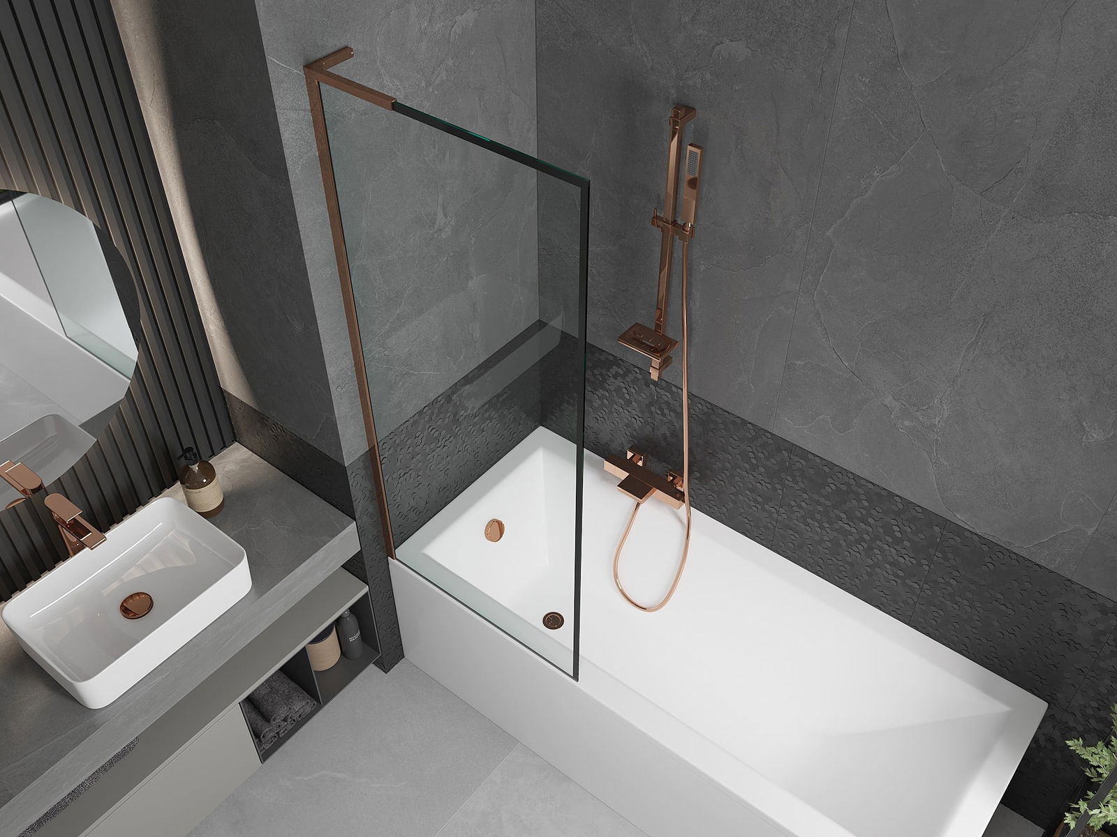Mexen Next L bath screen 1-winged 70 x 150 cm, black frame, rose gold - 895-070-000-03-70-60