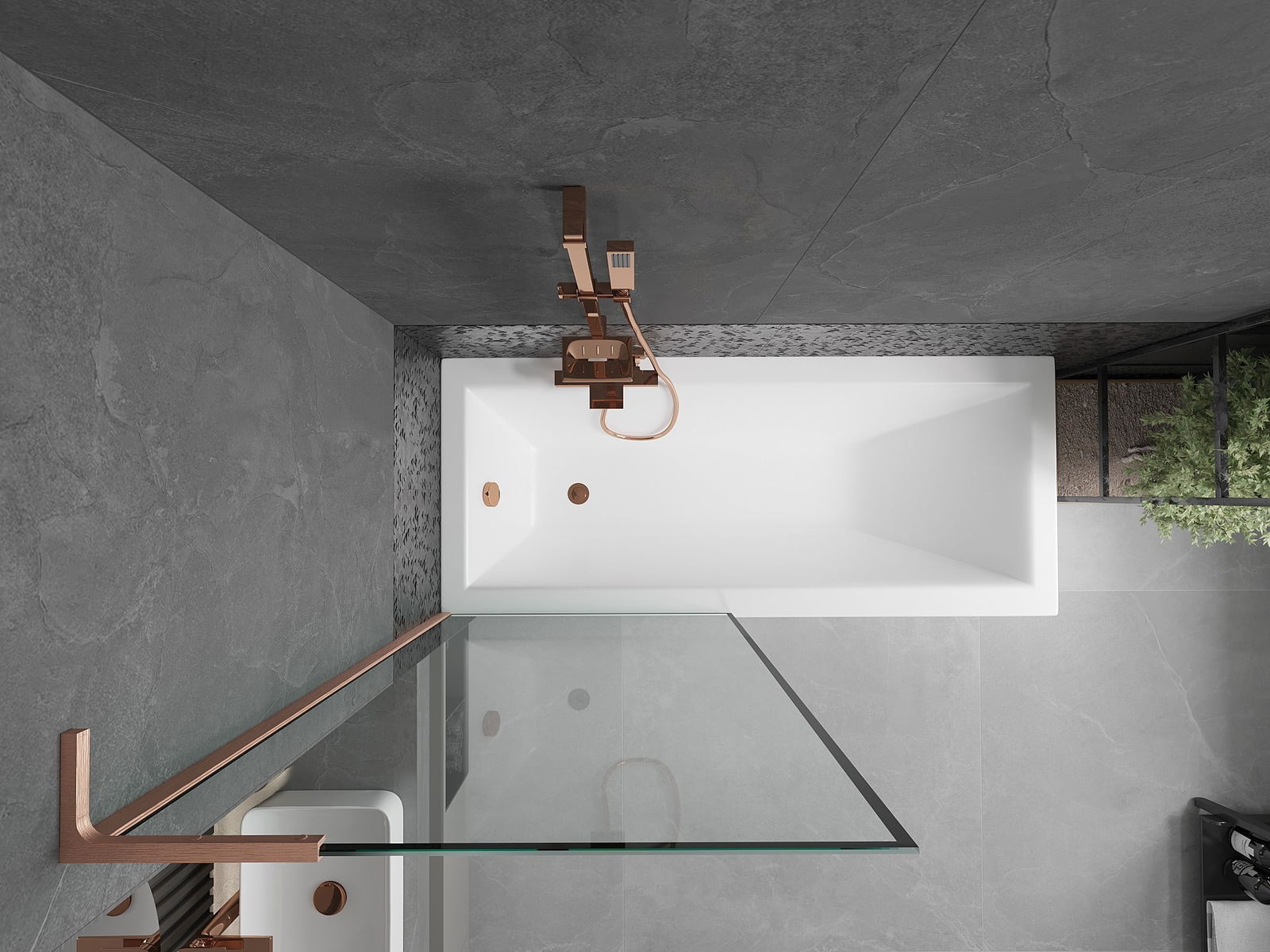 Mexen Next L bath screen 1-panel 80 x 150 cm, black frame, brushed copper - 895-080-000-03-70-65