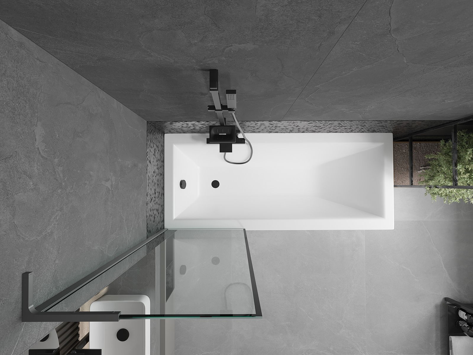 Mexen Next L Bath Screen 1-Panel 60 x 150 cm, Black Frame, Gun Metal - 895-060-000-03-70-95