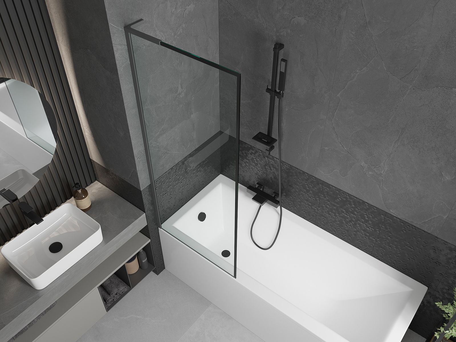Mexen Next L 1-wing Bath Screen 70 x 150 cm, Black Frame, Gun Metal - 895-070-000-03-70-95