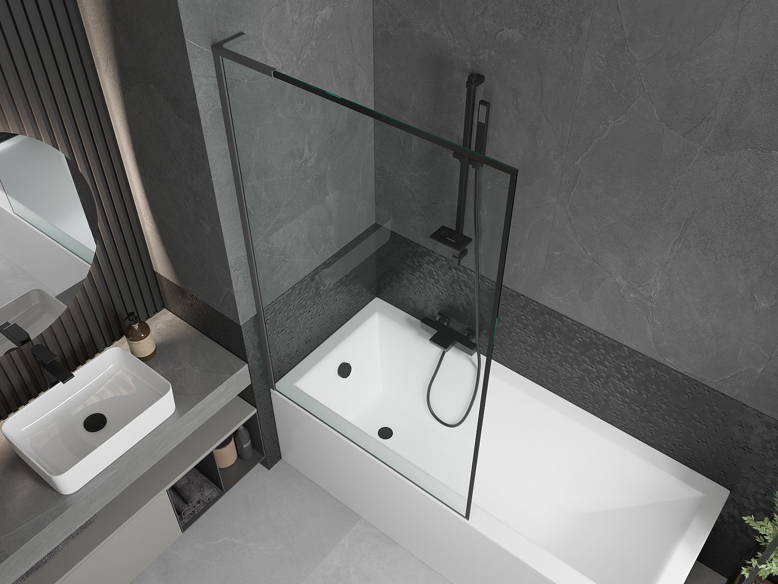 Mexen Next L single-panel bath screen 100 x 150 cm, black frame, gun metal - 895-100-000-03-70-95
