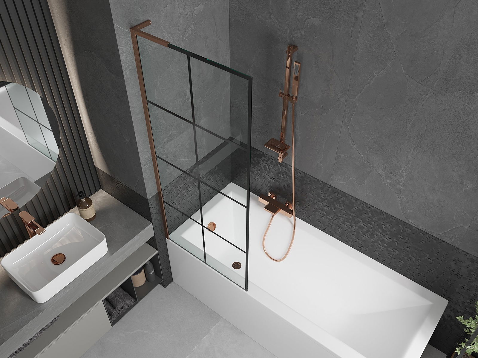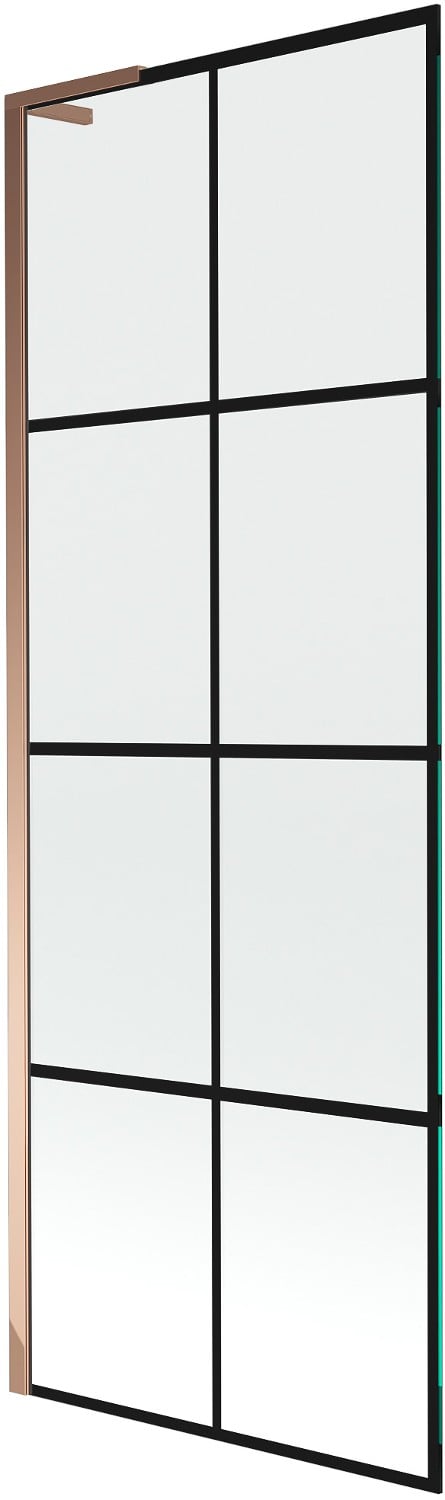 Mexen Next L 1-wing bath screen 70 x 150 cm, black grid, pink gold - 895-070-000-03-77-60