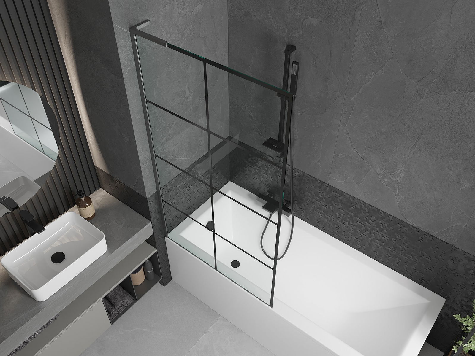Effective protection against water spilling during bathing. The screen has seals that perfectly fit the glass surface and the edge of the bathtub. A functional solution ensuring safety and easy maintenance of cleanliness.
