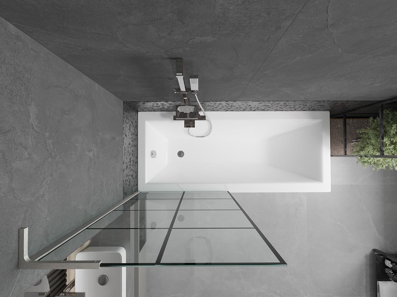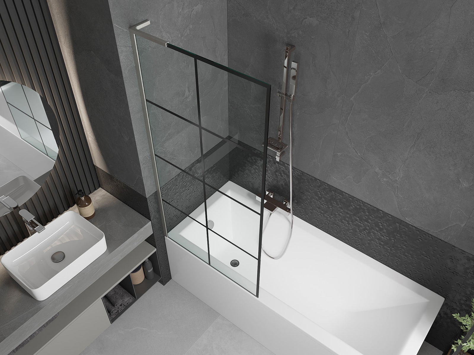 Effective protection against water spilling during bathing. The screen has seals that perfectly fit the glass surface and the edge of the bathtub. A functional solution ensuring safety and easy maintenance of cleanliness.