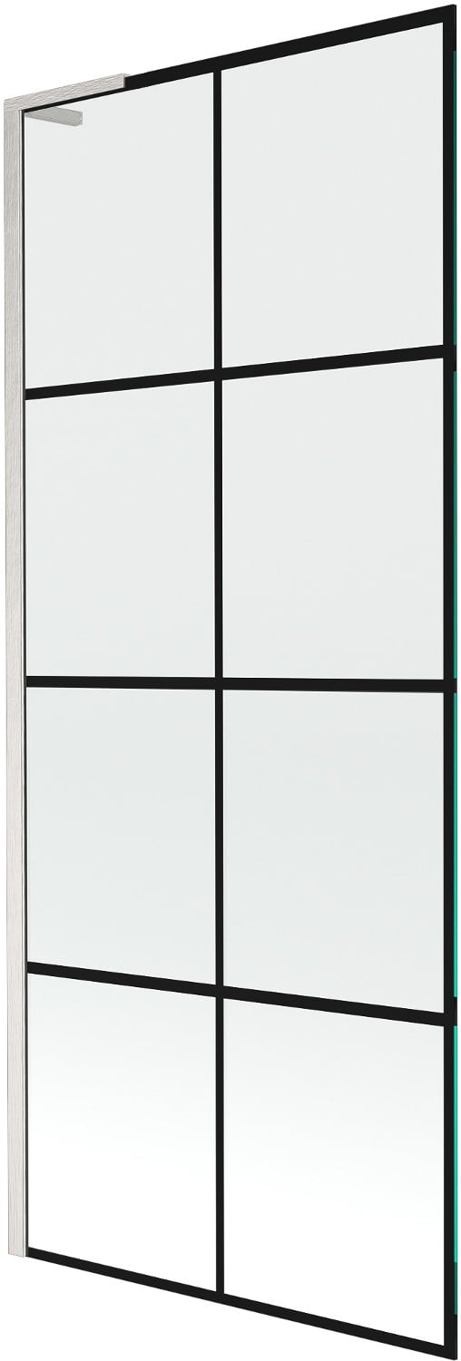 Mexen Next L 1-wing Bath Screen 80 x 150 cm, Black Grid, Brushed Nickel - 895-080-000-03-77-97